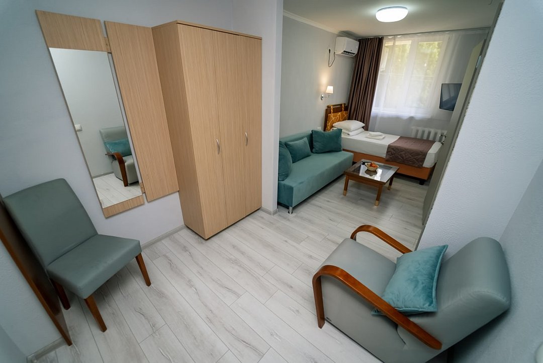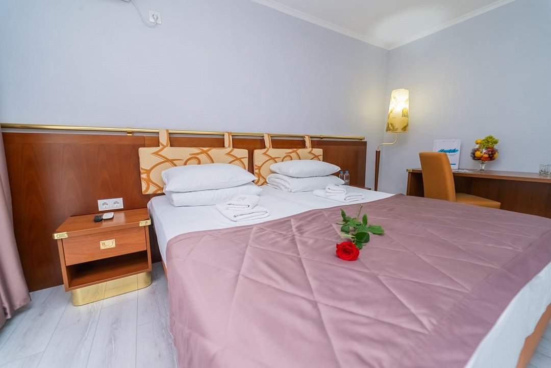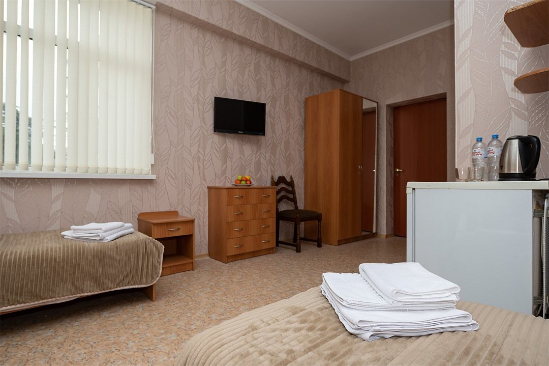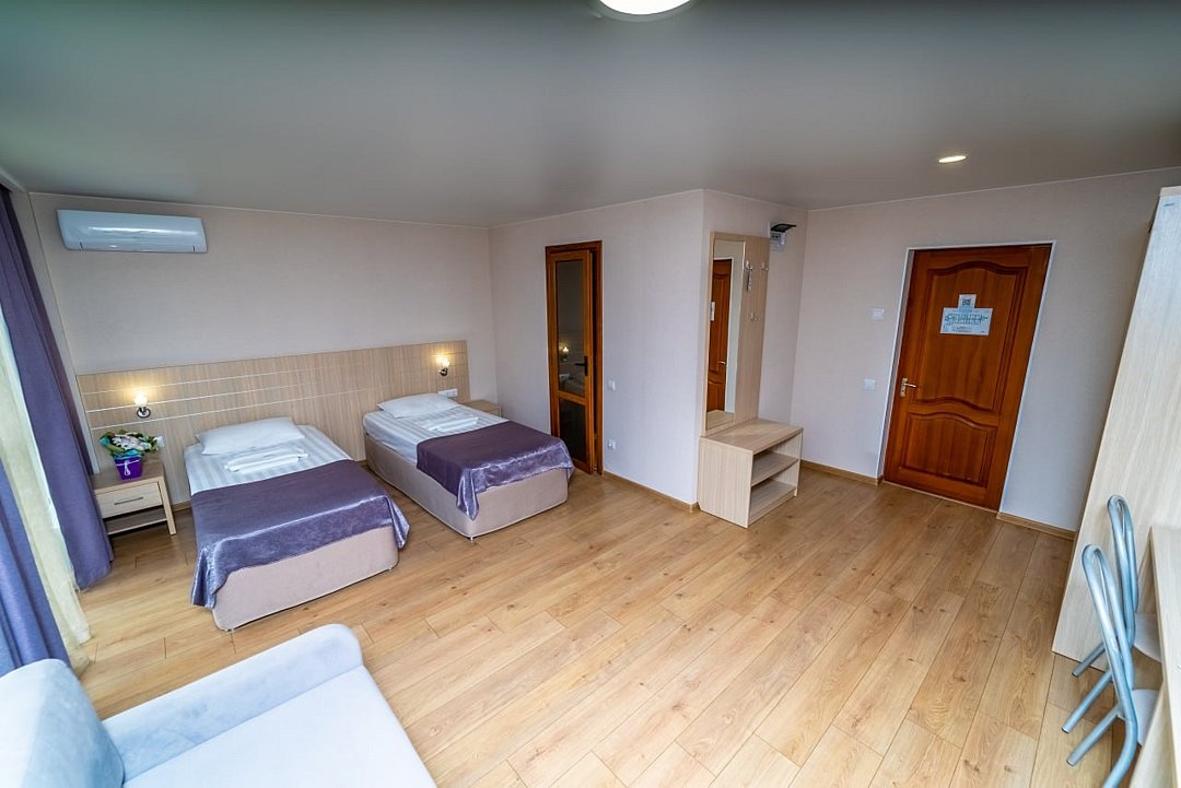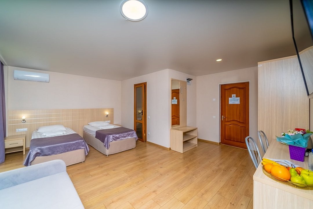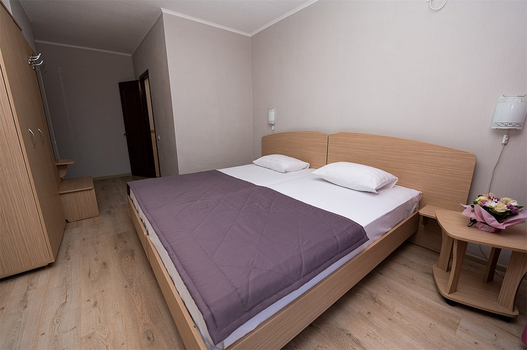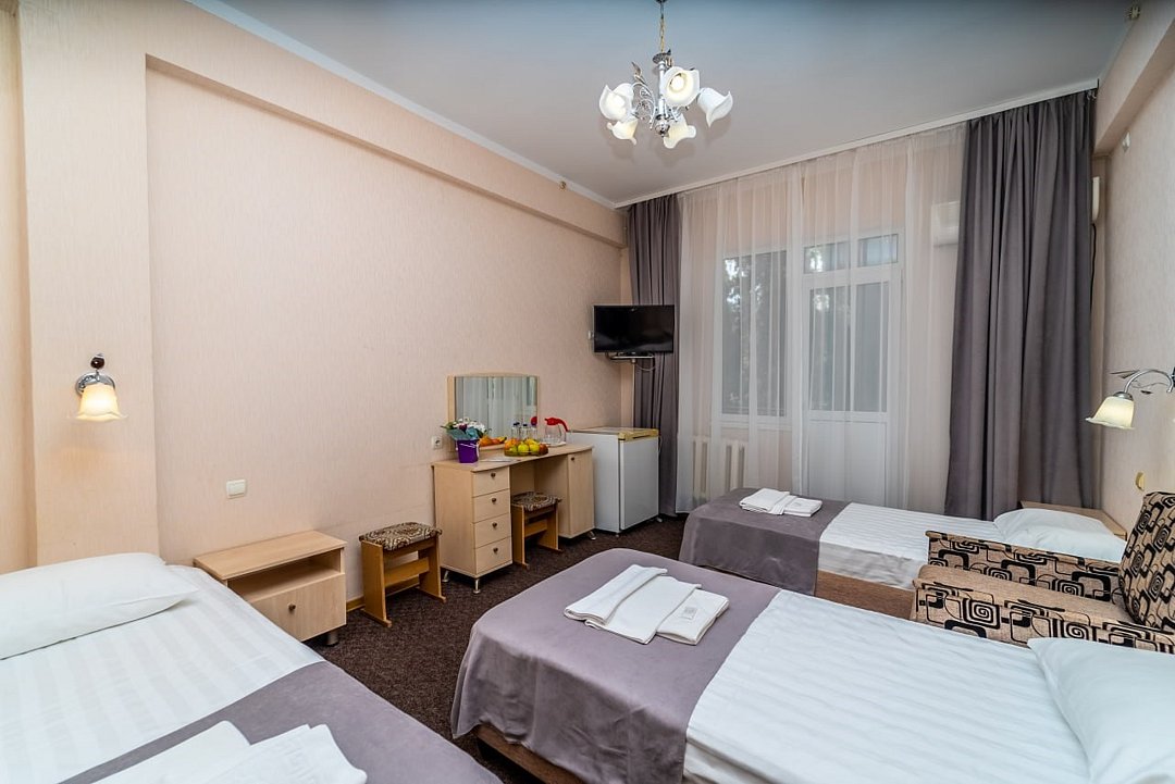 Лечение и оздоровлениеДостоинстваНеделю жили мы здесь с мамой. Место хорошее в целом, ремонт, когда мы приехали, почти был закончен. Окна заменили и мебель. Стандартные номера, чистые, ничего необычного не увидели. 15 минут идти до моря быстрым шагом. Но есть и автобус, который туда возит. Пляж понравился, галька мелкая.