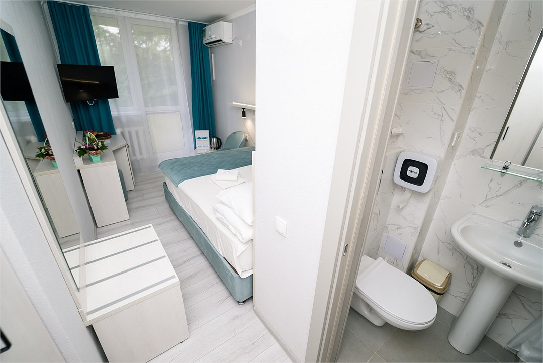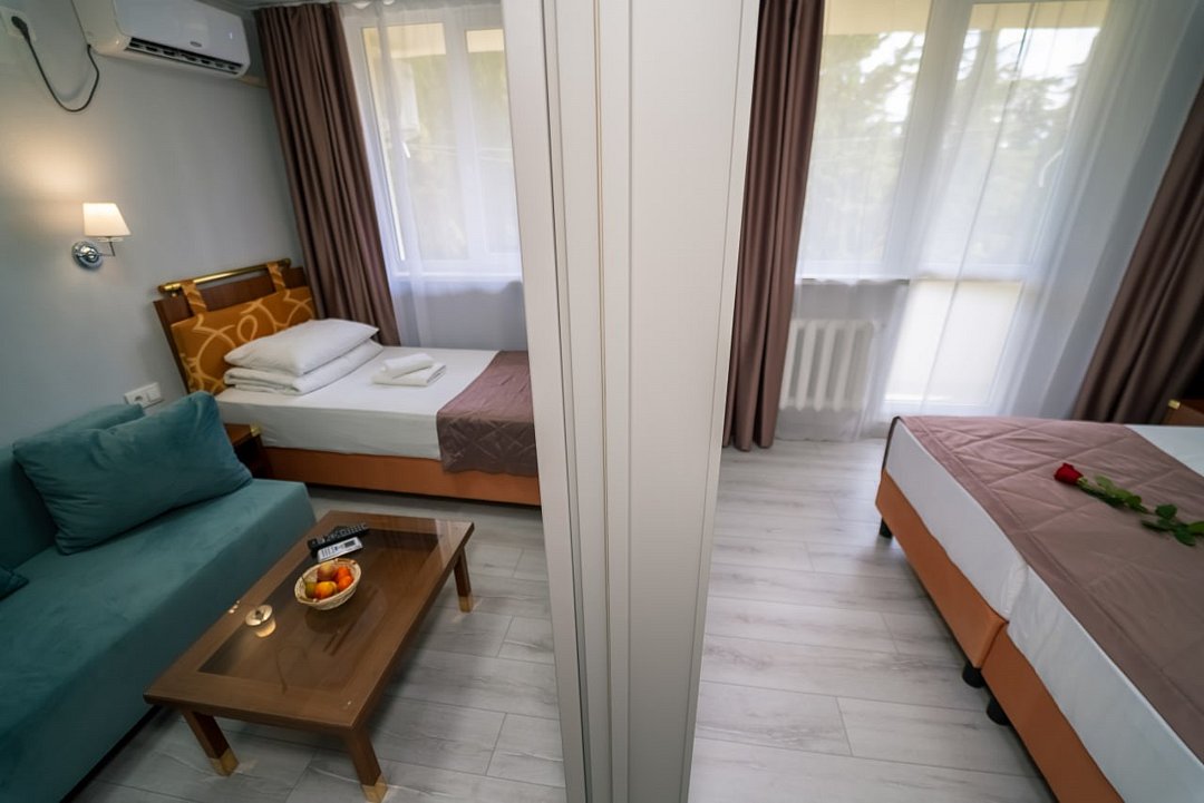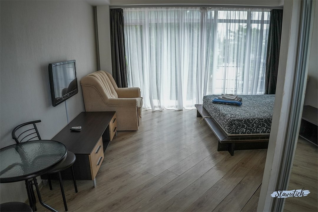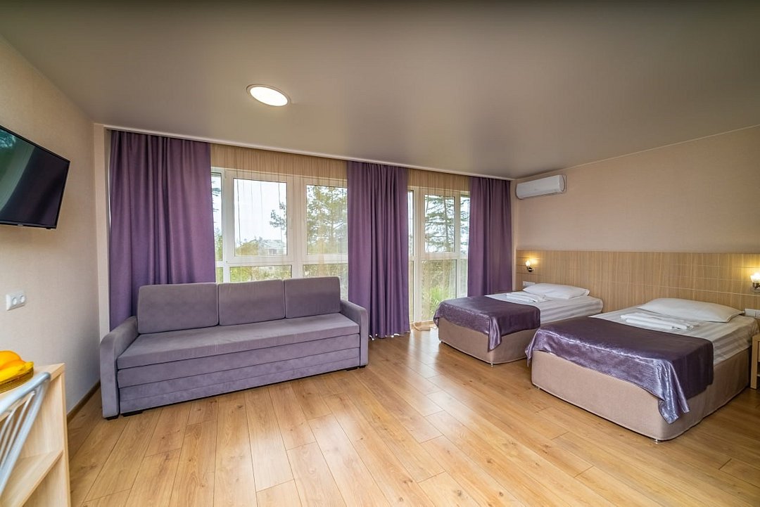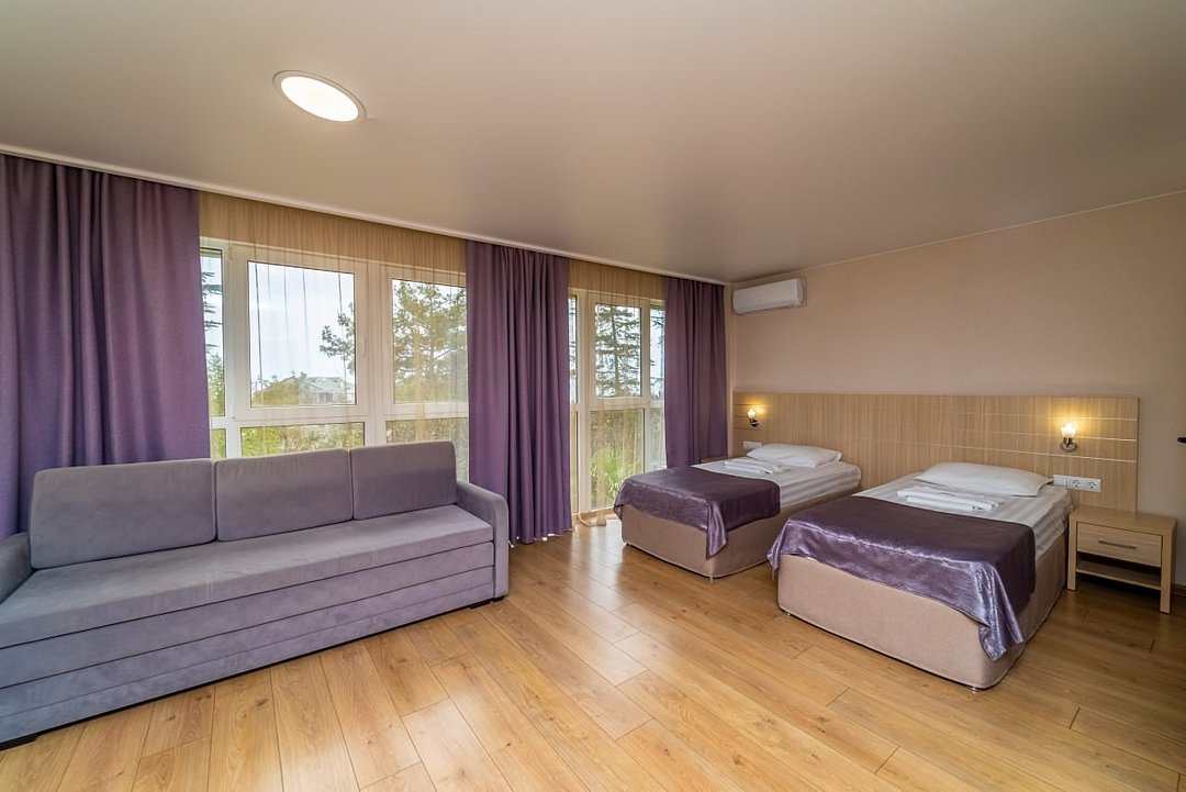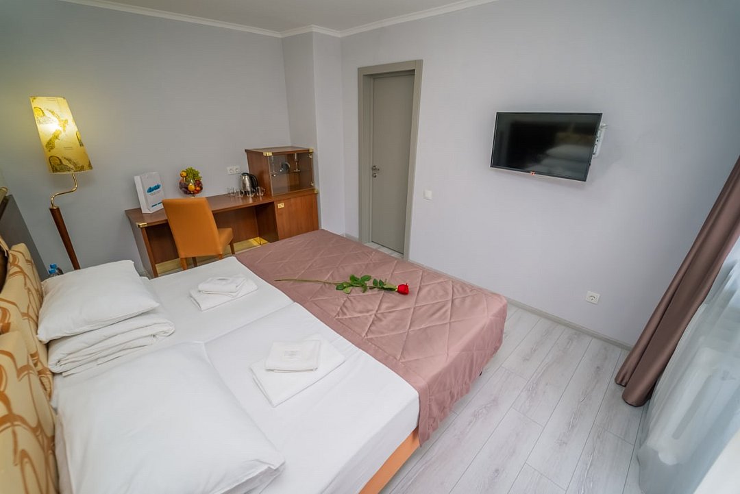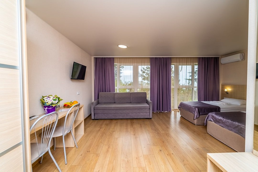 Лечение и оздоровлениеДостоинстваНеделю жили мы здесь с мамой. Место хорошее в целом, ремонт, когда мы приехали, почти был закончен. Окна заменили и мебель. Стандартные номера, чистые, ничего необычного не увидели. 15 минут идти до моря быстрым шагом. Но есть и автобус, который туда возит. Пляж понравился, галька мелкая.