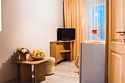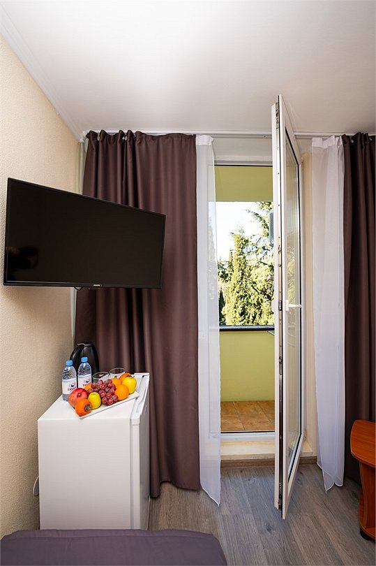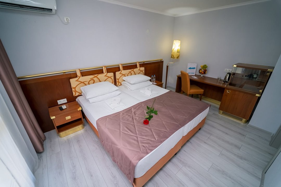 Вместимость номеров составляет от одного до трех гостей. Каждый номер оснащен удобствами, такими как кондиционер, большой плазменный телевизор, отличный Wi-Fi, чистое постельное белье и ванная комната с душем, феном и средствами личной гигиены. В номерах также есть холодильник и чайник, а также предоставляется бутилированная вода. Как комплимент, гостям предлагаются сезонные фрукты. В санатории можно питаться по системе «шведский стол», предлагающей полный пансион.