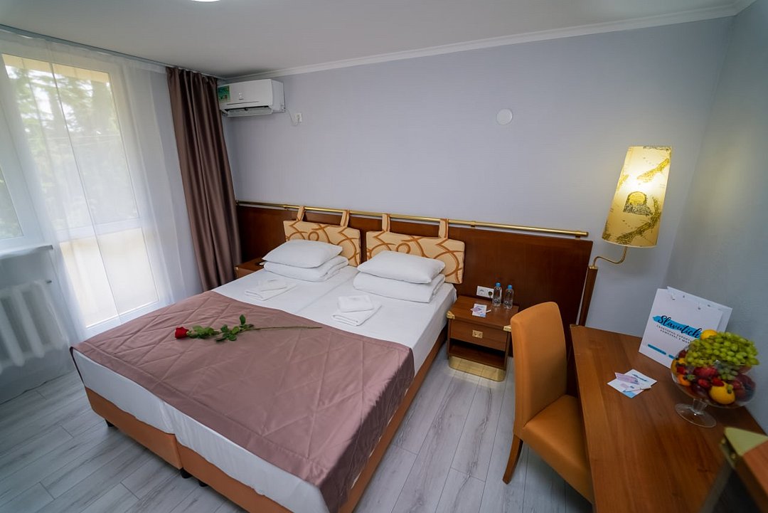 НедостаткиВ «Славутиче» мы уже не первый год, последний раз был самым худшим. Нас было четверо – я и мои дети. Бронировали 3-х местный номер, а получили 2-х местный и не комфорт!!! Это на ресепшене нам не объяснили никак! Потом нас заселили в грязный номер, в котором отсутствовали полотенца и были повсюду волосы!! Я попросила через неделю поменять нам всё необходимое, на что мне ответили, что у них нет белья даже для новых посетителей, не то что для меня. VIP питание, что мы купили, было просто ужасным! Больше сюда ни ногой! Все просто отвратительно за такие огромные деньги!