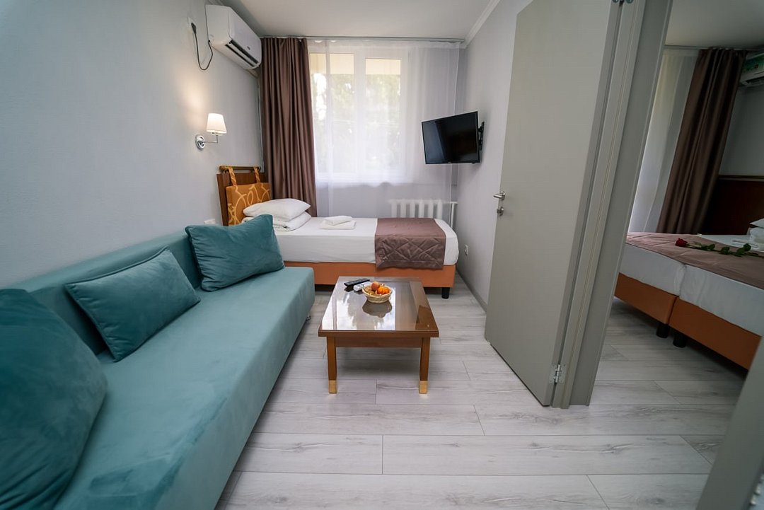 Лечение и оздоровлениеДостоинстваОтдыхали здесь целой компанией, хотим вернуться как-нибудь снова. Отдых выдался не только хорошим, но и весёлым. Было где погулять, поразвлекаться. Мужья играли в футбол или другие активные игры, а мы с подружкой ходили на массаж и по косметологам. Можно было спокойно выехать на пикник в горы, посетить Долину приведений. Номера были большие, присутствовал телевизор и даже бар. Море с пляжем чистейшие. Проводились вечеринки для взрослых.