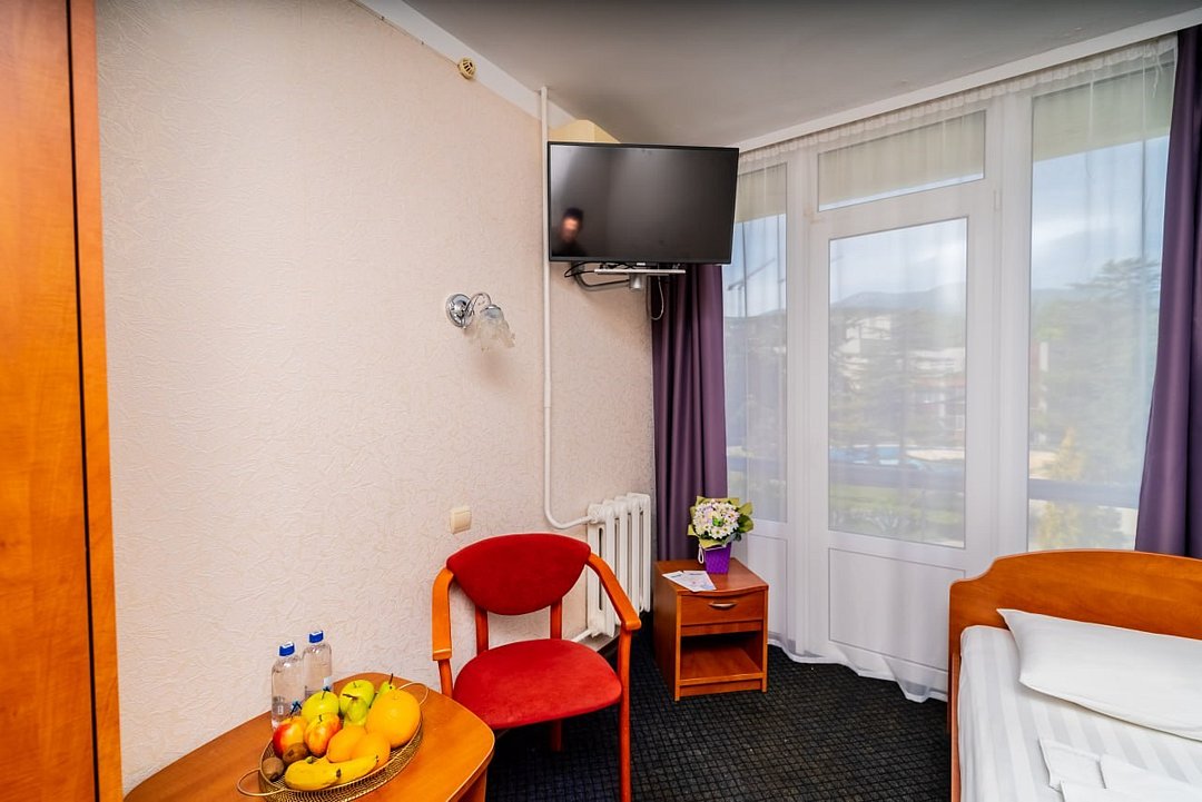 Лечение и оздоровлениеДостоинства17 дней пребывали в этом санатории с ребёнком. Понравилась очень территория, она просторная и красивая. Проводился кое-где ремонт, но это нормально. Имелся большой бассейн. Номер староват внешне, но всё необходимо там было. В столовой нормально, можно было брать сколько хочешь еды, сын всегда наедался. Развлечения для детей всегда были: кино, анимация, мультфильмы. Есть поблизости аптека, рынок, парк, дельфинарий. Из окон вид красивый. До пляжа далеко.