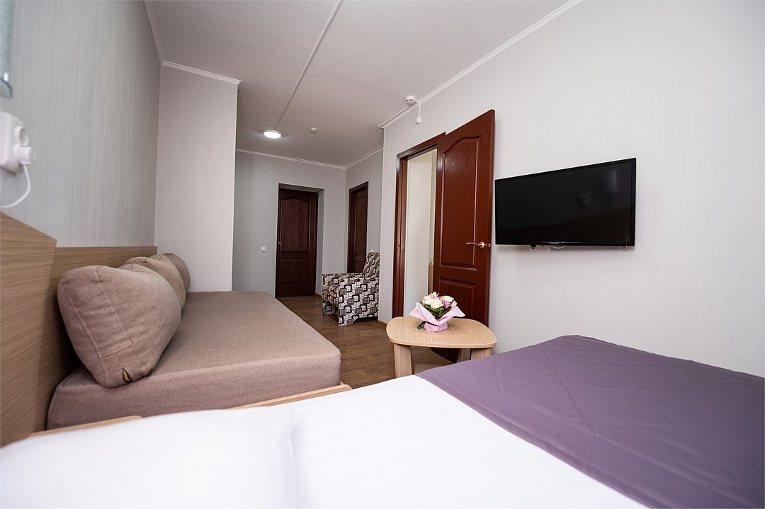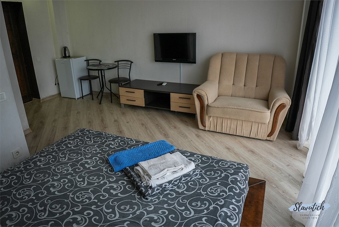 НедостаткиПриходится выбирать – или лечиться, или отдыхать. Пахло краской. Шведский стол с маленьким выбором, еда больше диетическая. Один раз произошло так, что водитель отказался везти людей, из-за того, что ему мало платят и вообще у него выходной. Многие были возмущены, особенно семьи с детьми и пожилые люди. Лежаки сделали платными для всех гостей санатория!