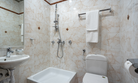 В ванной комнате: санузел, душевая кабина; туалетные принадлежности;два банных халата; тапочки; фен.