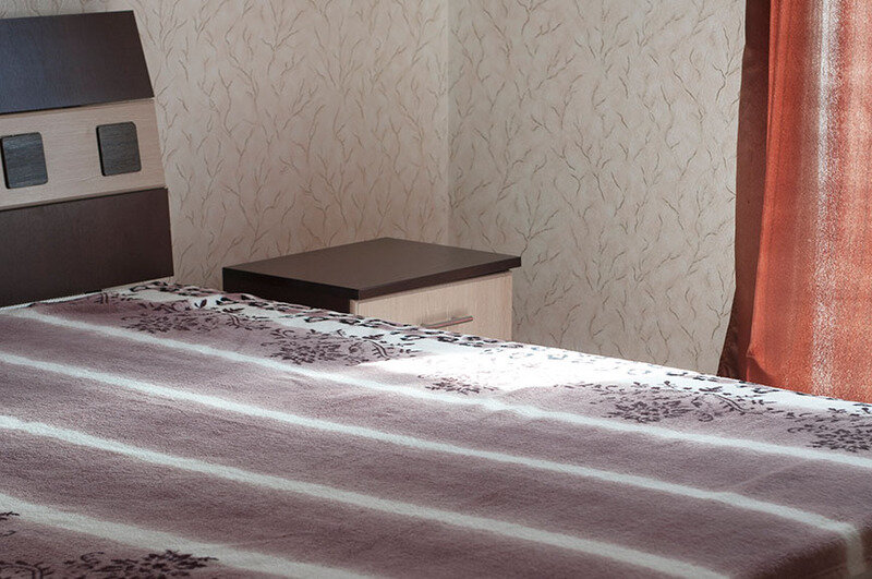 Минус - кровати очень низкие, ниже колена, розетки рядом с кроватью может не быть. Мебель уставшая, но целая и крепкая. Матрасы на кроватях хорошие.