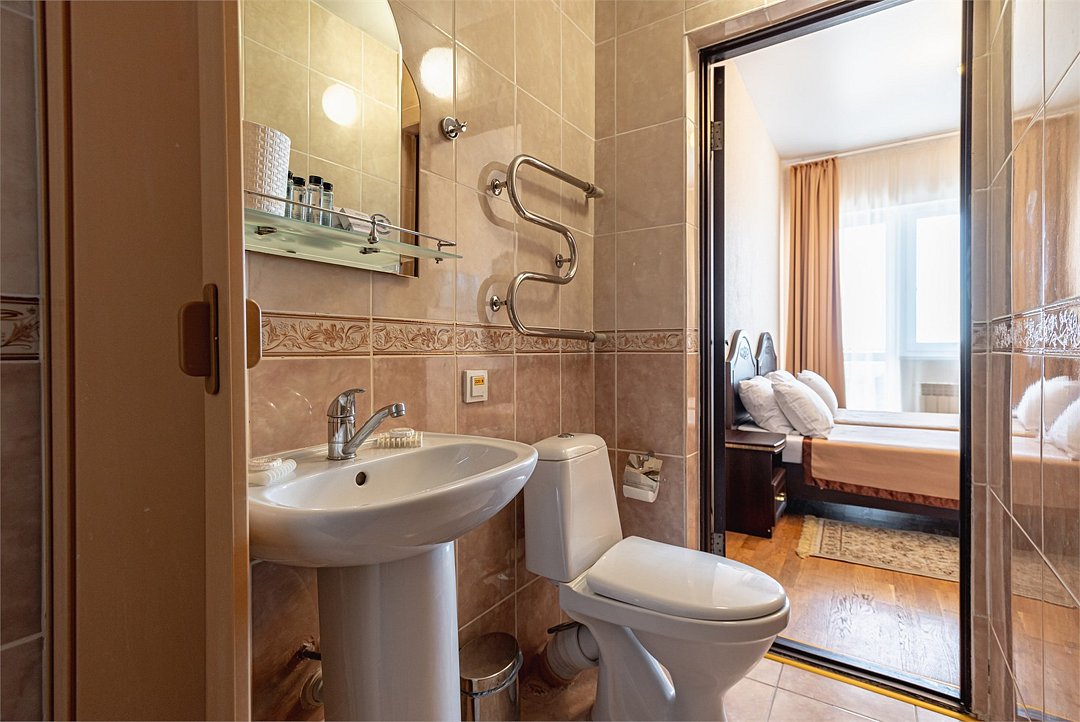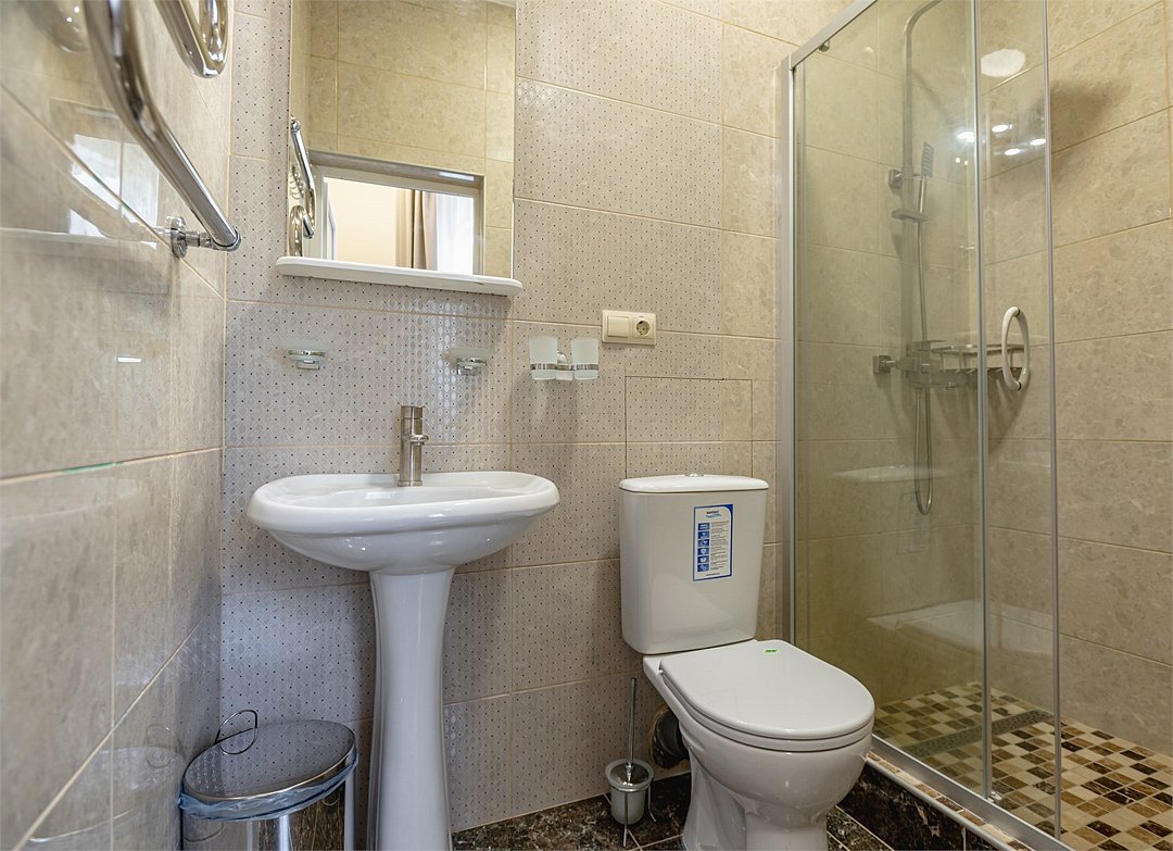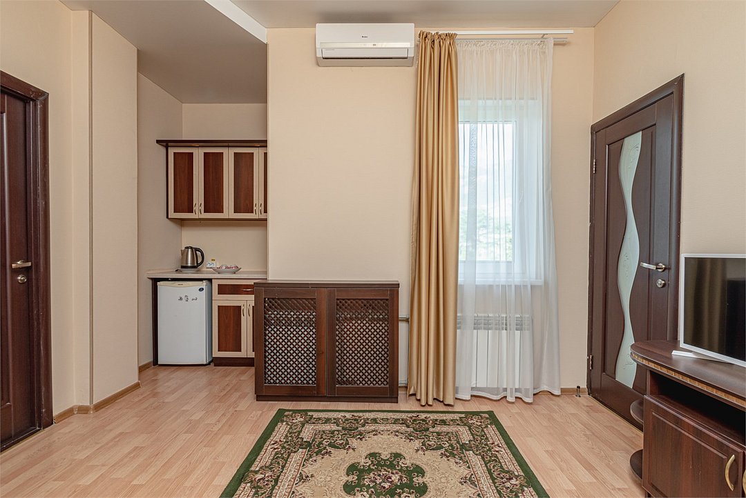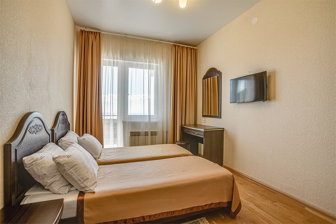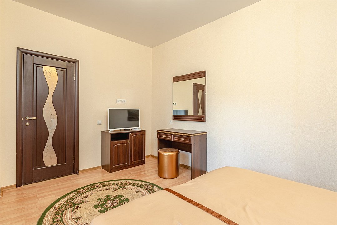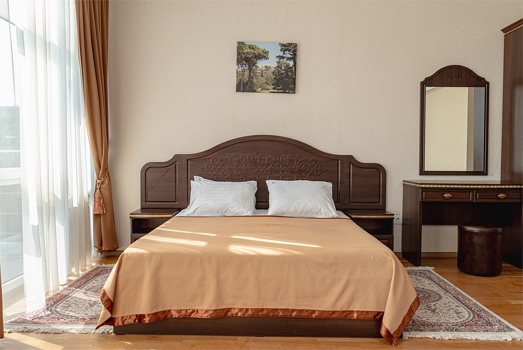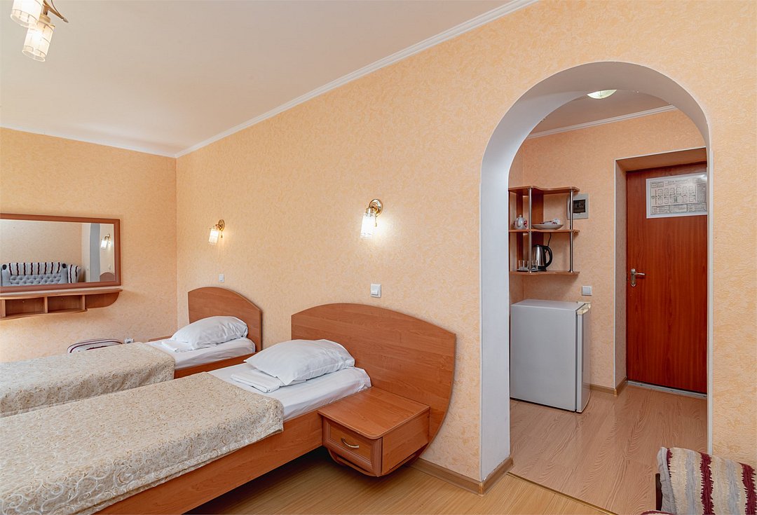 Стандарт улучшенный, с современным дизайном, с -2-х спальной кроватью и доп.местом диван-кровать, площадь 23 кв.м. Комната, коридор, сан. узел, с прекрасным видом на парк. Кондиционер, телевизор, холодильник, электрический чайник, посуда. В санузлах - душевая кабина, умывальник. Вид на парк. Номера расположены со 2 по 5 этаж. Корпус с лифтом. Проживание с животными категорически запрещено. В стоимость путевки входит: - 3-разовое питание по комплексному меню - комплекс медицинских процедур на основании Вашей санаторно-курортной карты - посещение бассейна/тренажерного зала - трансфер на набережную/пляж (в зависимости от сезона) - парковочное местоУслуги и удобства