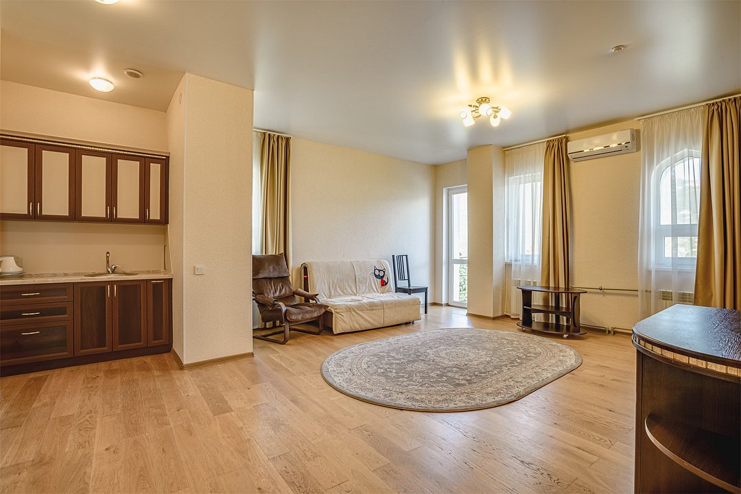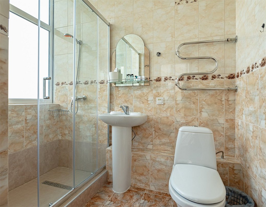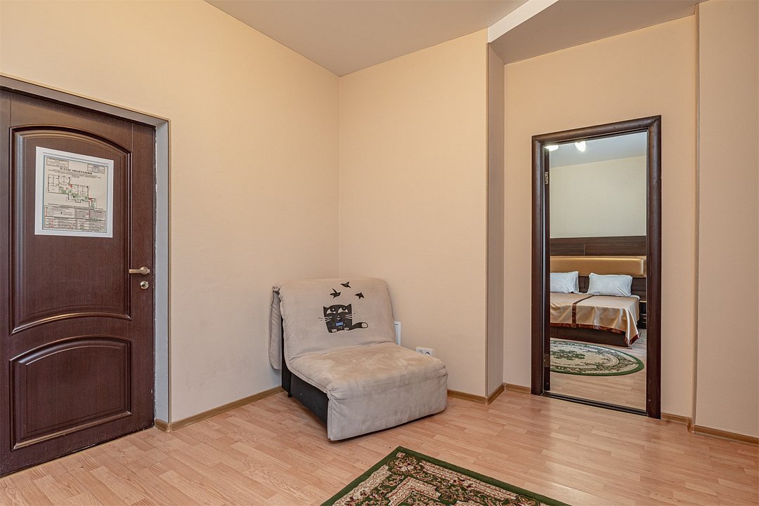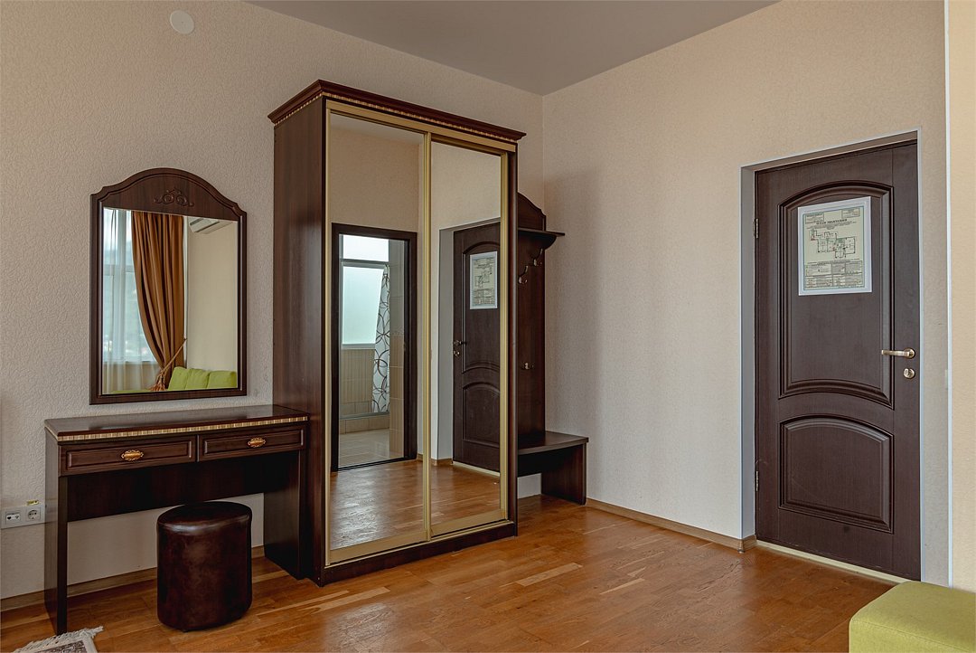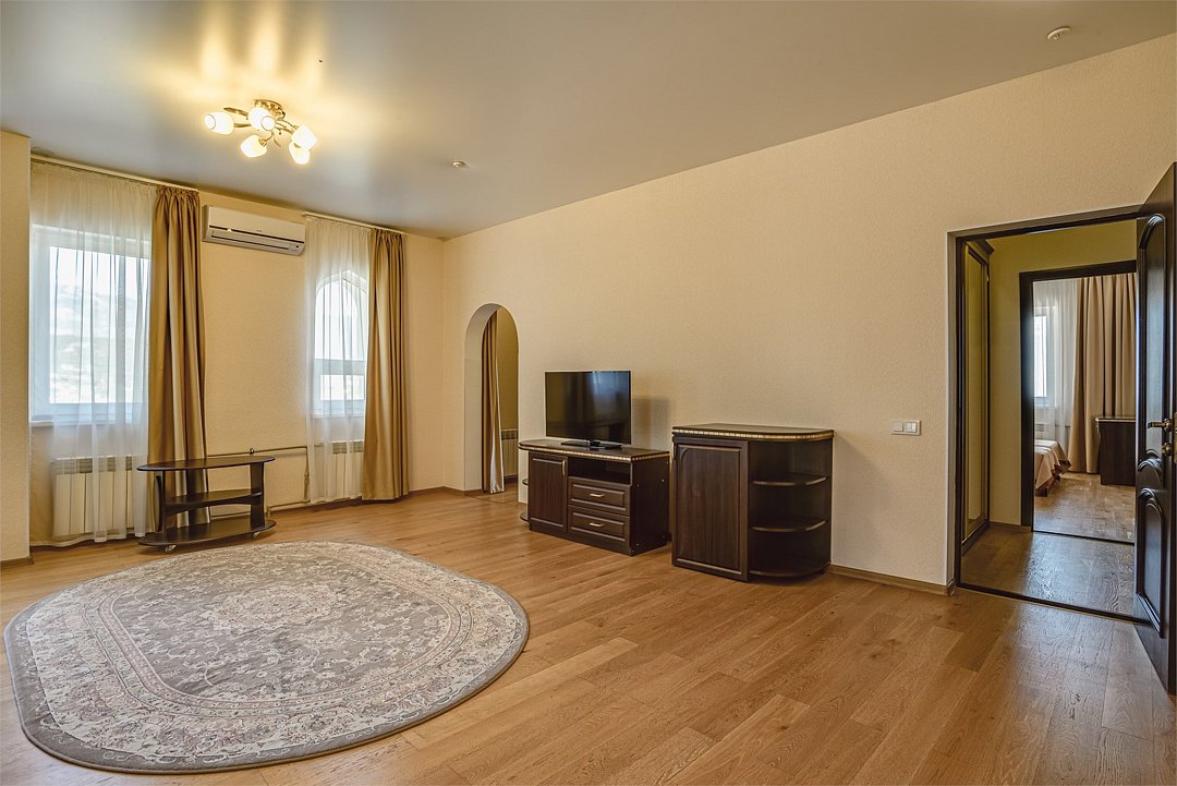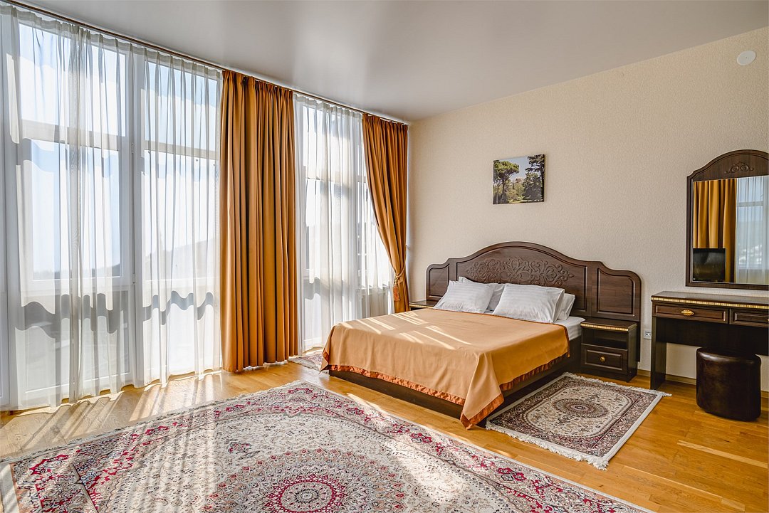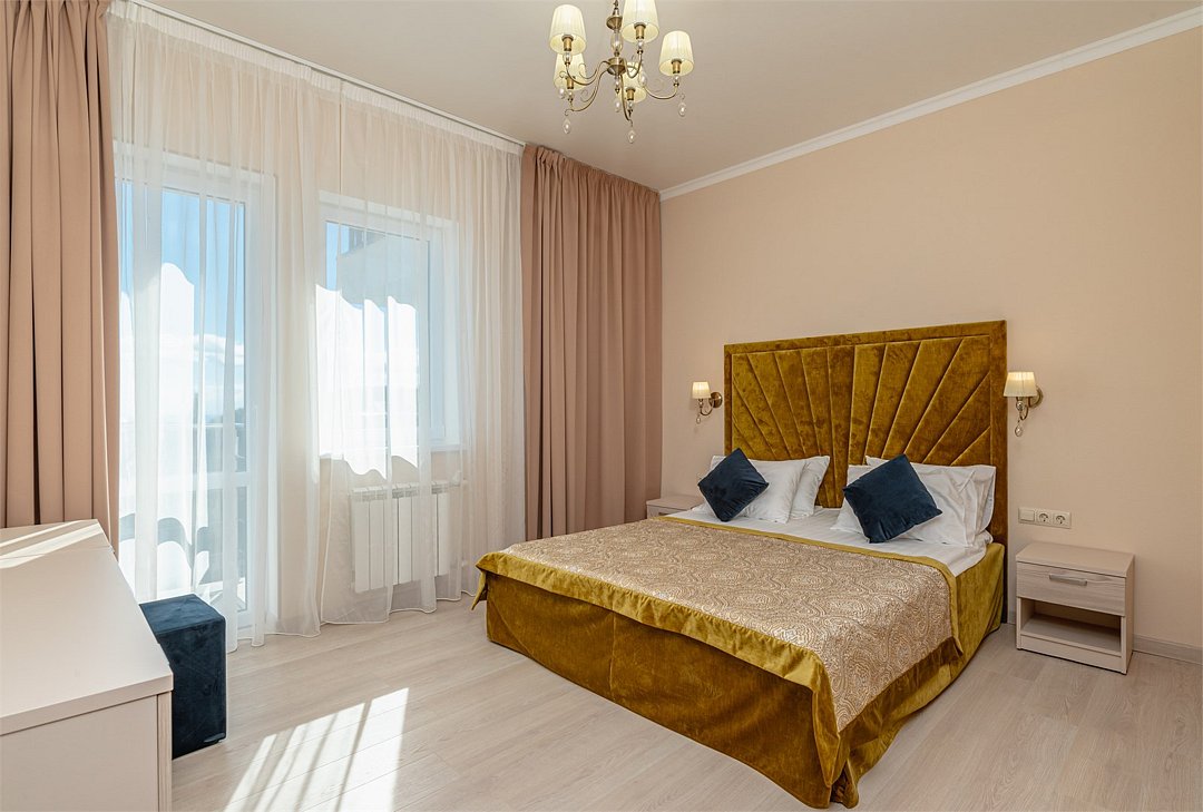 Люкс однокомнатный, с современным дизайном, с -2-х спальной кроватью и доп.местом диван-кровать, площадь 40 кв.м. Комната, коридор, сан. узел, номер с прекрасным видом на море. Кондиционер, телевизор, холодильник, электрический чайник, посуда. В санузлах - душевая кабина, умывальник. Номера расположены со 2 по 5 этаж. Корпус с лифтом. Проживание с животными категорически запрещено. В стоимость путевки входит: - 3-разовое питание по комплексному меню - комплекс медицинских процедур на основании Вашей санаторно-курортной карты - посещение бассейна/тренажерного зала - трансфер на набережную/пляж (в зависимости от сезона) - парковочное местоУслуги и удобства