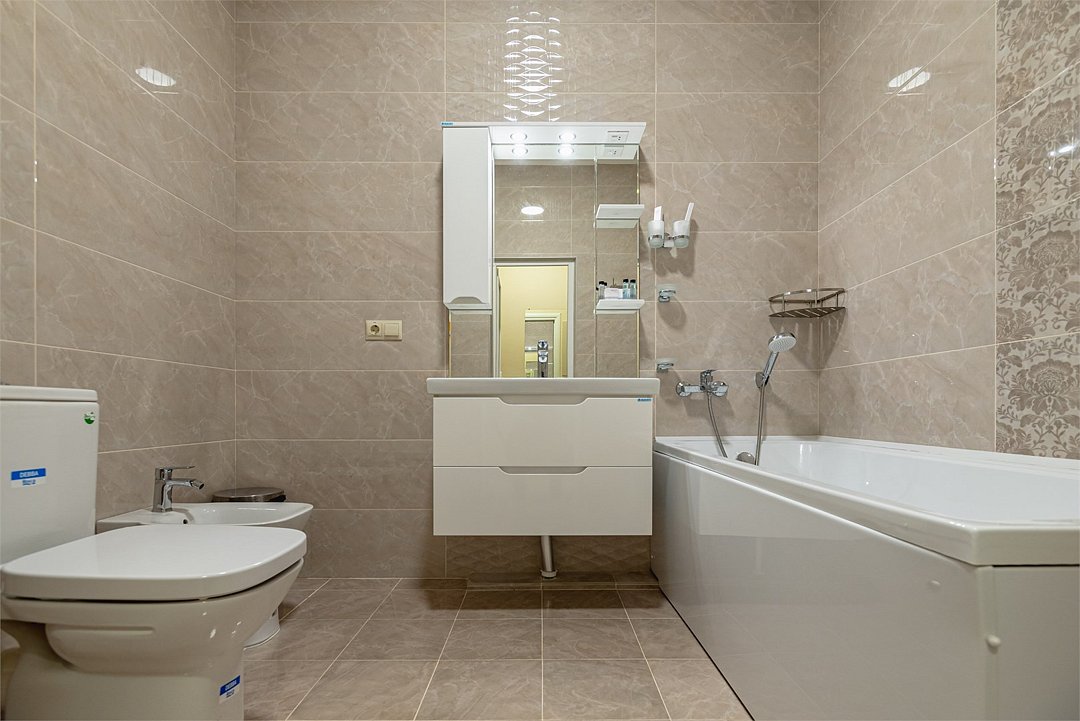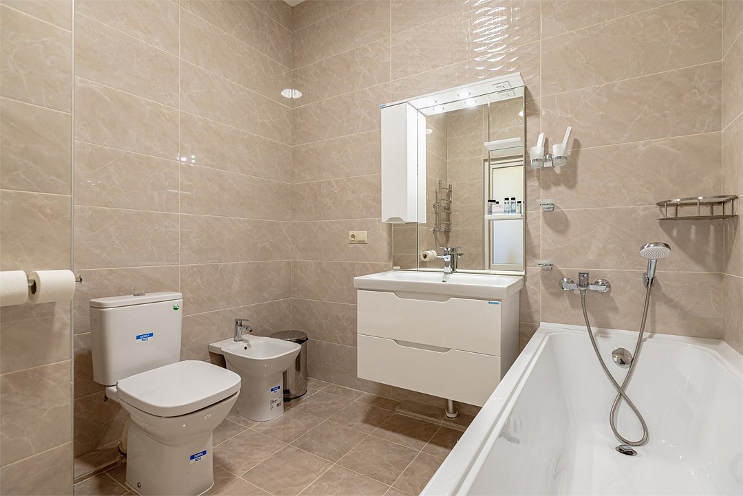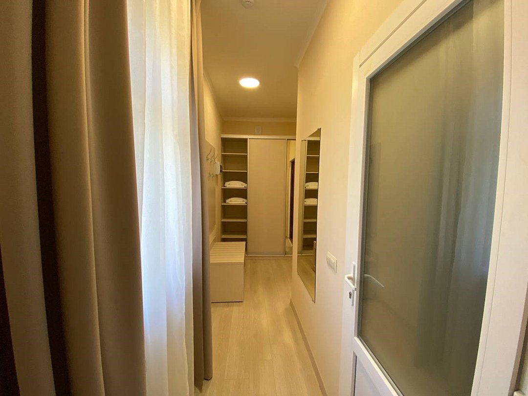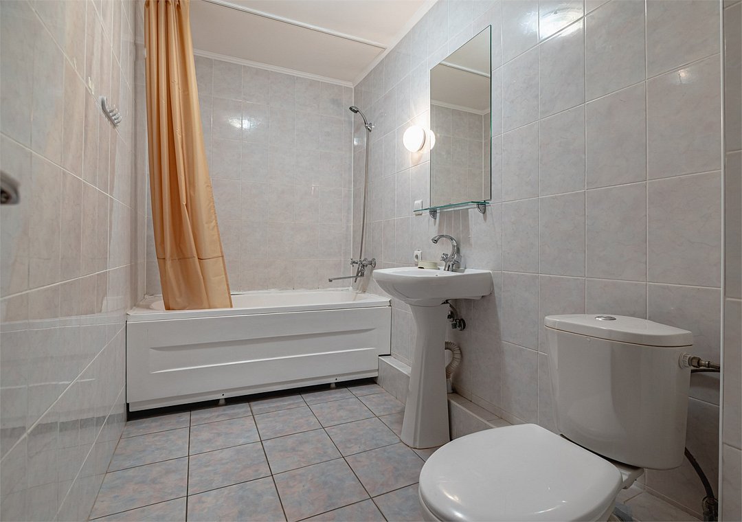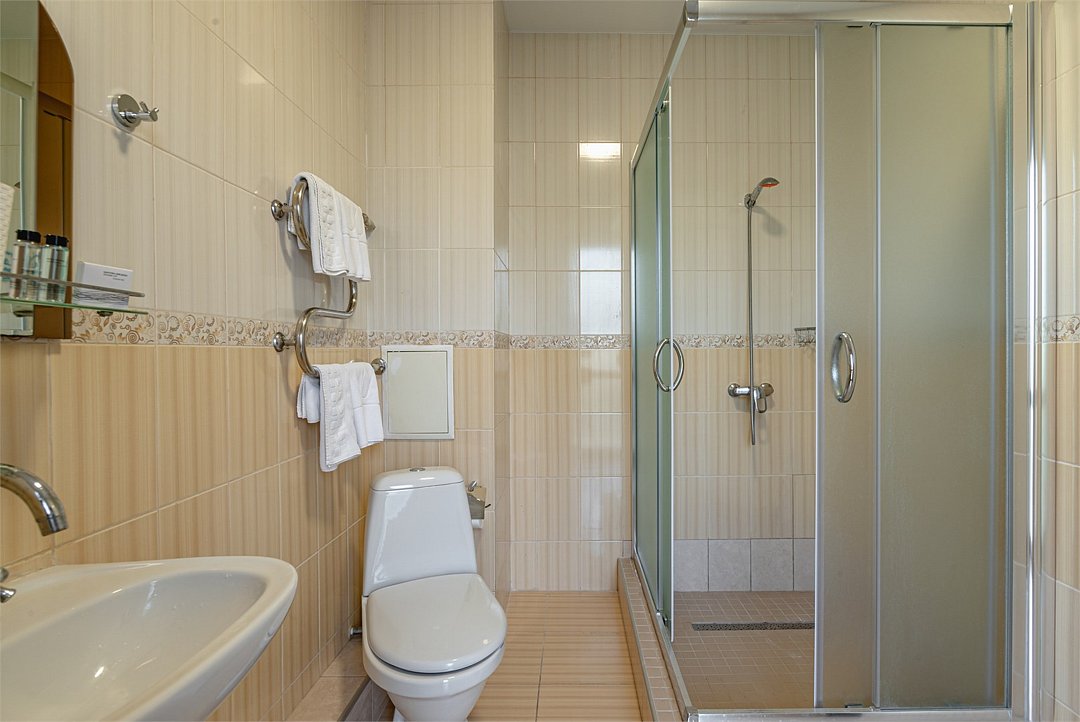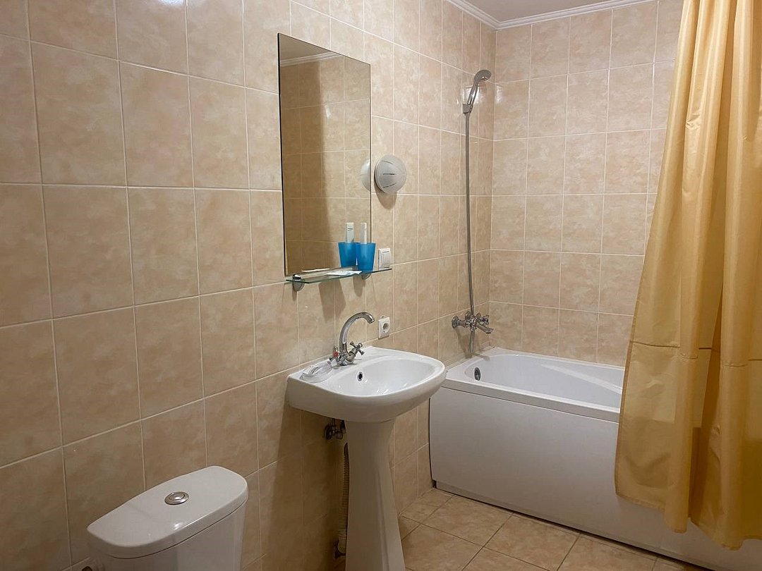 телевизор, кабельное телевидение, Wi-Fi, холодильник, кондиционер, ванная комната, душевая кабина, банные принадлежности, халаты, тапочки, балкон, двуспальная кровать, гладильная доска, шкаф для одежды, пуфики, мебельный гарнитур, чайный набор, набор посуды, чайник, унитаз, раковина, мягкая мебель, вид на море, кухонная посуда, кухонная утварь, туалетный столик, туалетные средства, туалет, сушилка для белья, диван-кровать, раскладной диван, шкаф-купе, гостиничная парфюмерия, номер для некурящихВ номере