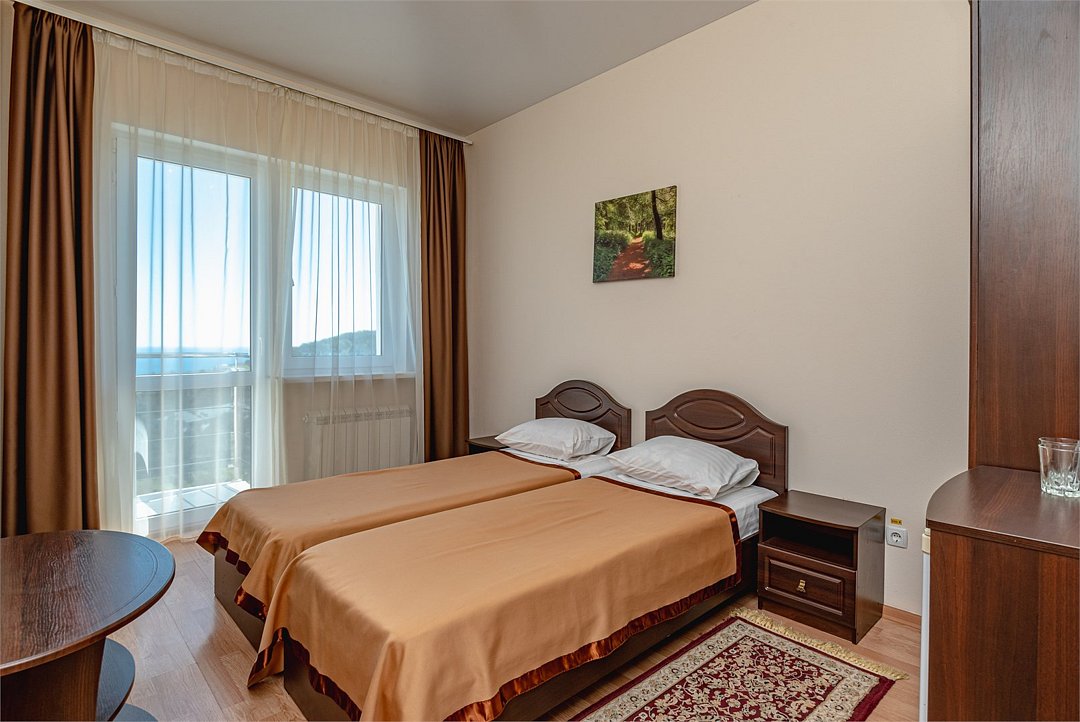 Номера со всеми удобствами с видом на горы,лес,парк. Номера находятся на 3, 6, 7 и 8 этаже. Корпус с лифтом (до 7 этажа). Проживание с животными категорически запрещено. В стоимость путевки входит: - 3-разовое питание по комплексному меню - комплекс медицинских процедур на основании Вашей санаторно-курортной карты - посещение бассейна/тренажерного зала - трансфер на набережную/пляж (в зависимости от сезона) - парковочное местоУслуги и удобства