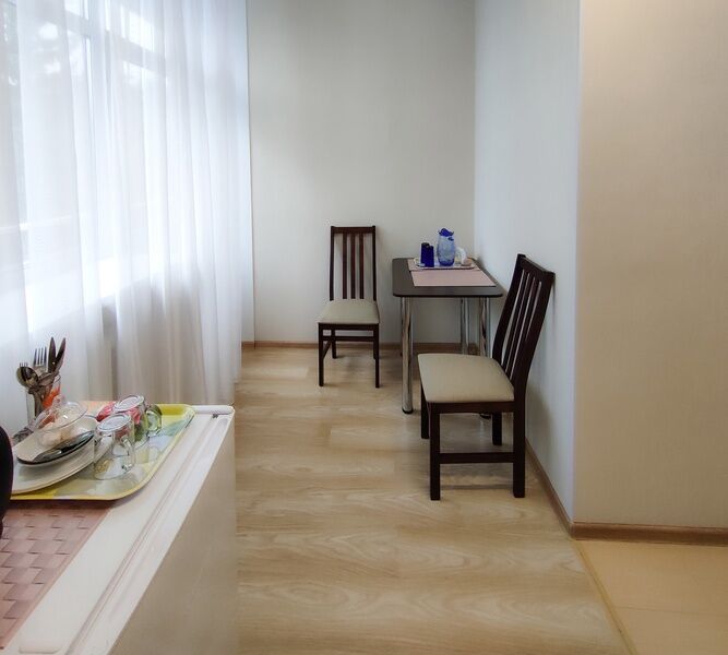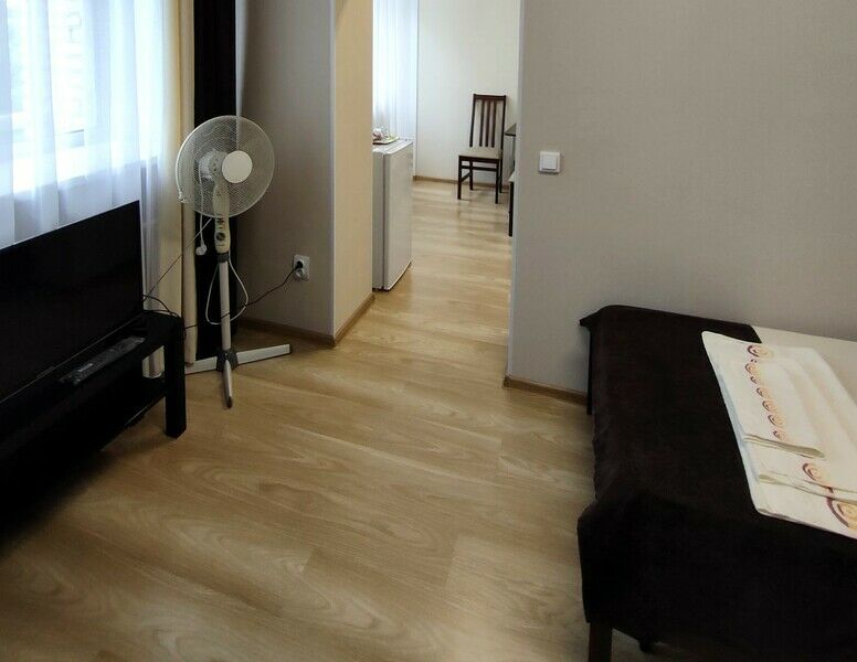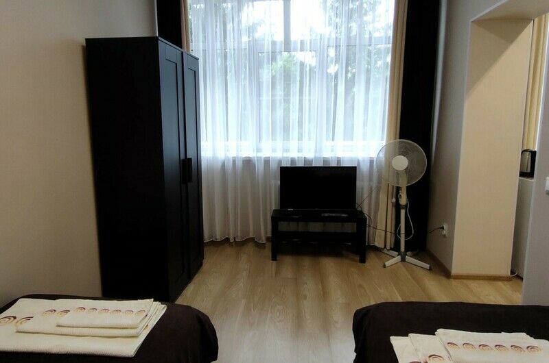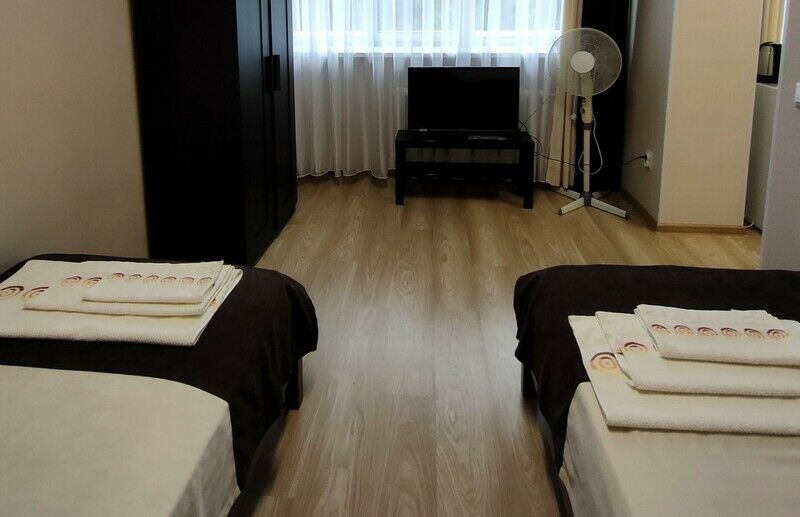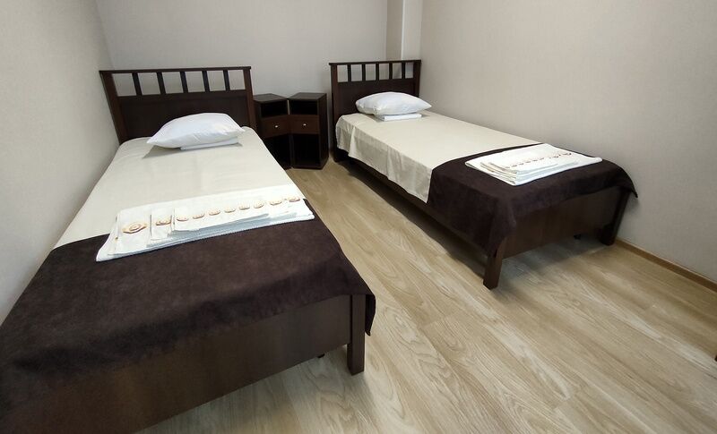 Две односпальные кровати, шкаф для одежды, телевизор, холодильник, кухонный стол, стулья, с/у с душем