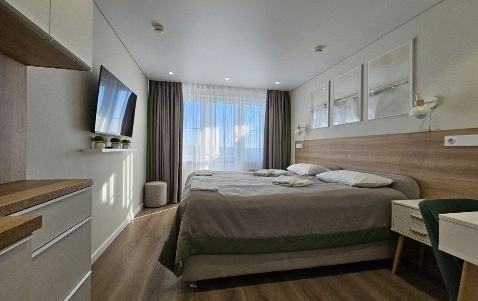 Пространство для идеального отдыха 1 или 2 человек. Номер «Стандарт Плюс» встречает гостей современным дизайном и продуманной эргономикой.