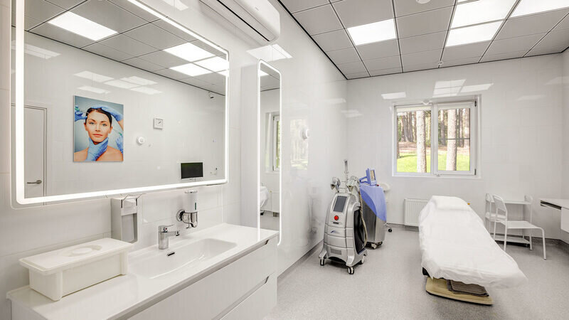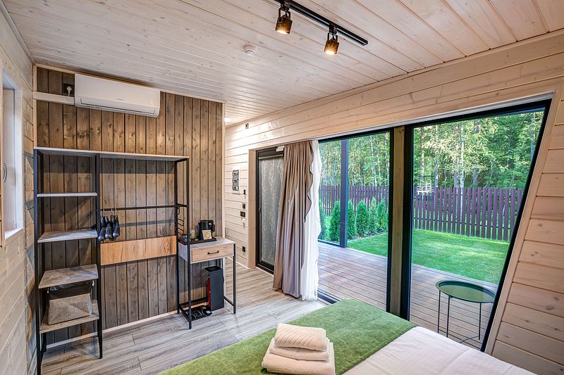 Интерьеры номеров выполнены в сдержанном скандинавском стиле, подчёркивающем близость к природе. Панорамные окна открывают вид на сосновый бор, способствуя глубокому расслаблению и восстановлению. Все детали продуманы так, чтобы каждый день пребывания здесь становился шагом к обновлению — тела, кожи и души.