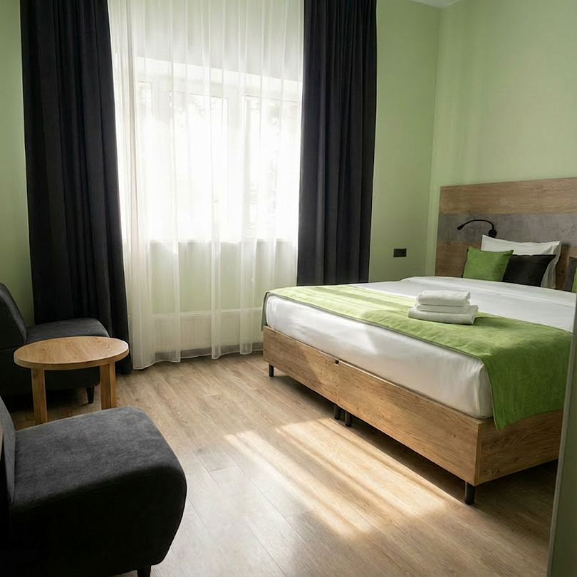 Улучшенный просторный номер для комфортного проживания. Современный ремонт, наличие всех необходимых удобств.