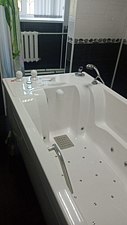 Подводный душ-массаж — это одна из методик водолечения, массажный эффект водяной струи, испускаемой под давлением, и контрастность температуры воды в ванне и в душе позволяет достичь высоких результатов лечения. Действие подводного душа-массажа схоже классическому лечебному массажу. Однако оно более выражено за счет того, что тело больного находится в воде в максимально расслабленном состоянии, а значит, массаж при этом более глубокий и менее безболезненный.