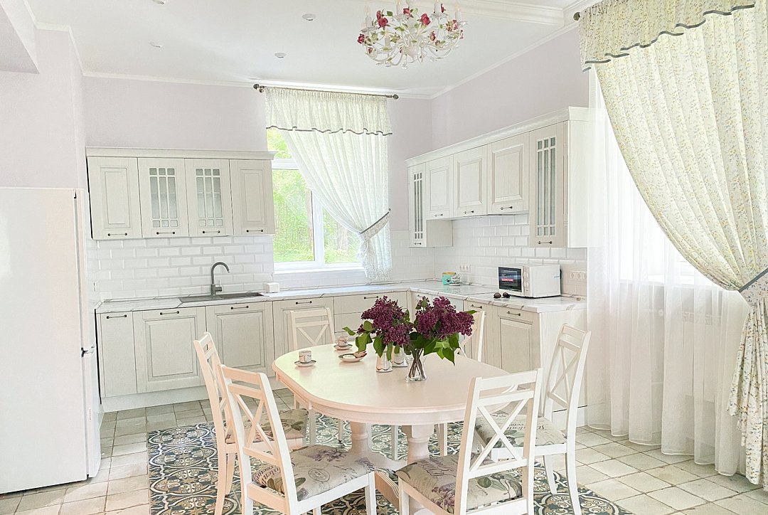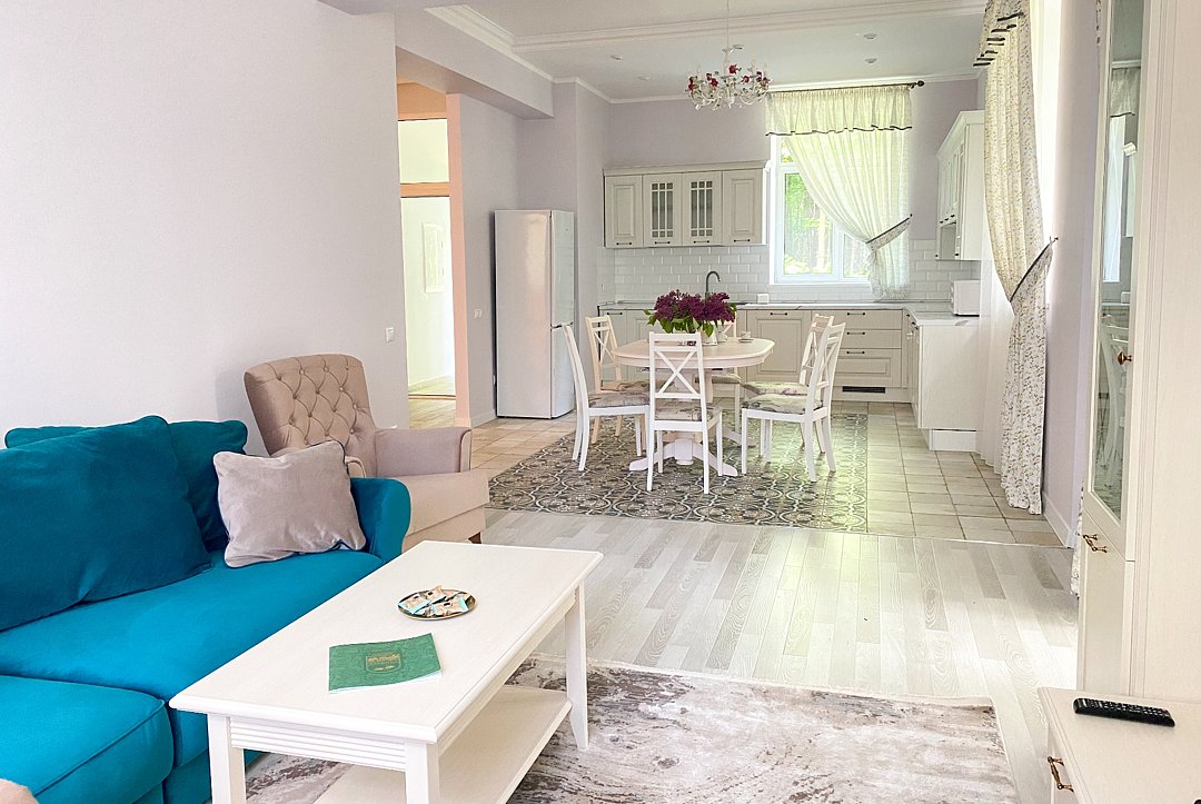 Коттедж полностью укомплектован для комфортного проживания: кондиционер, холодильник, посудомоечная машина, электрическая плита, духовка, микроволновая печь, чайник, набор посуды и столовых приборов, стиральная машина, сушилка для белья, фен. Просторная зона отдыха с большим ЖК ТВ. WI-FI и собственная парковка на 2 автомобиля.