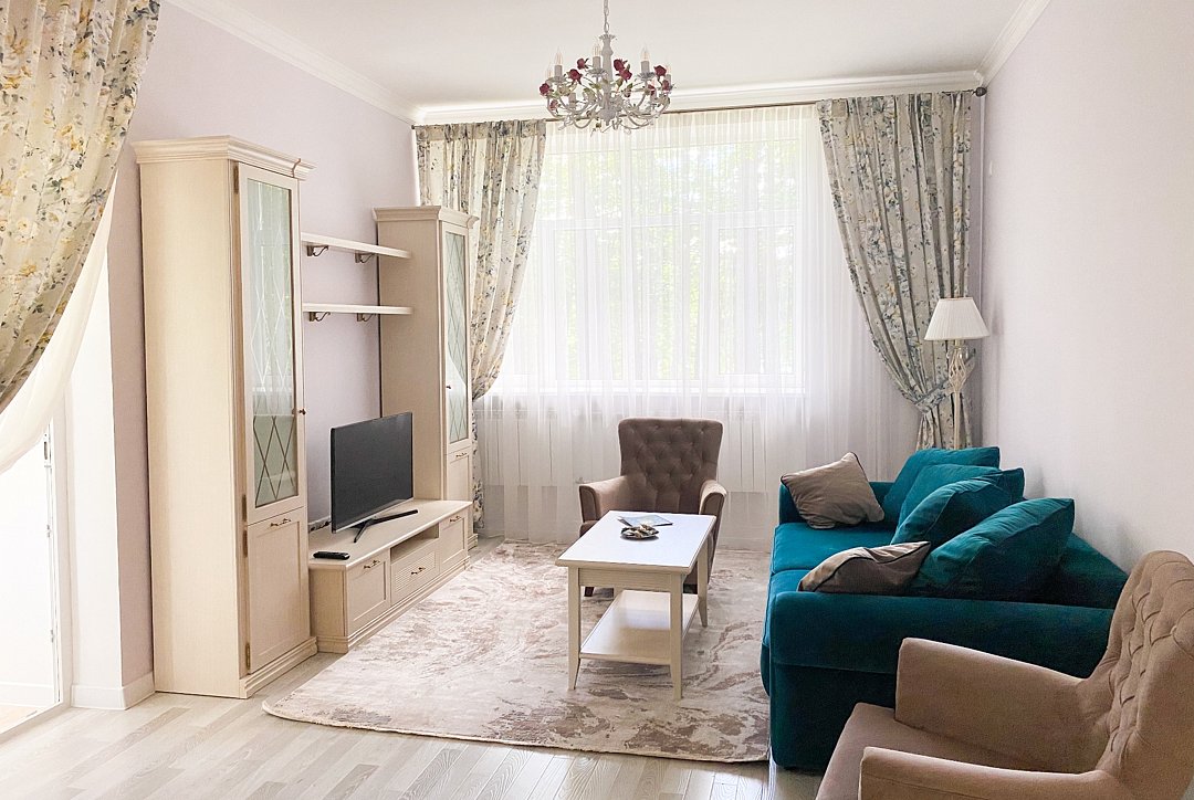 Интерьер выполнен в классическом стиле.