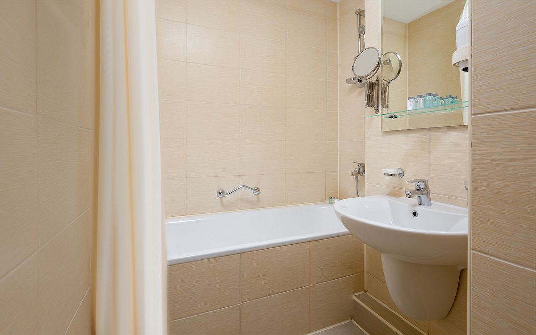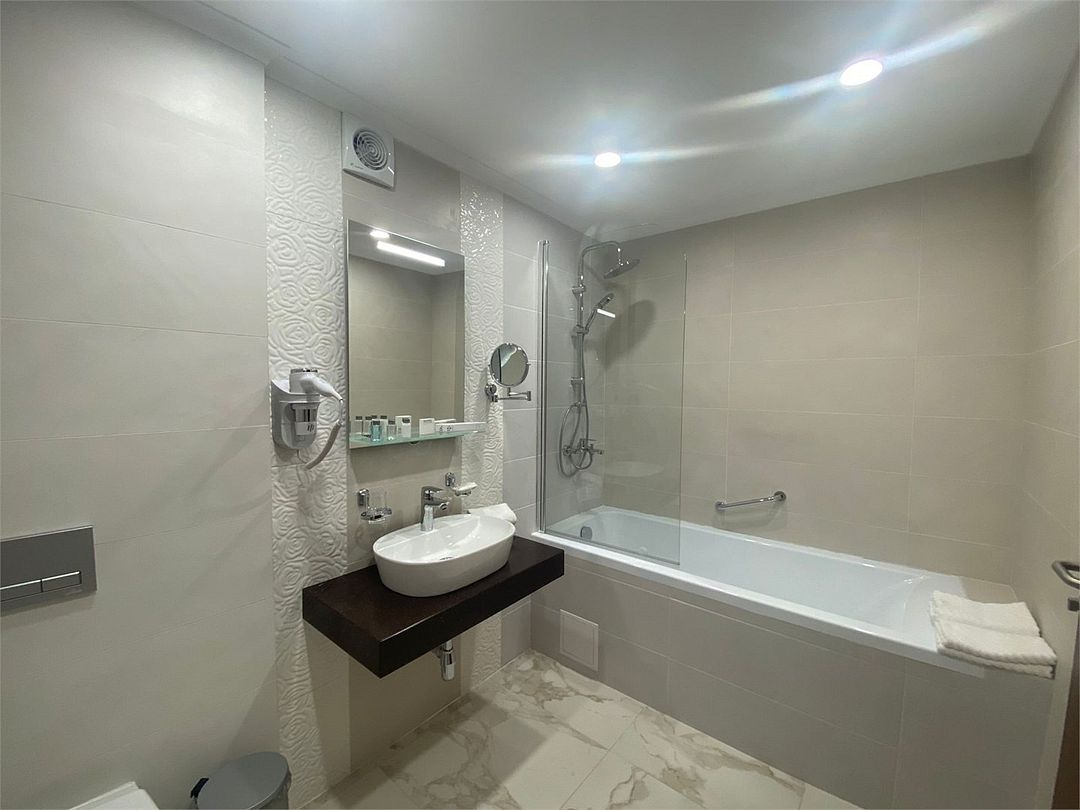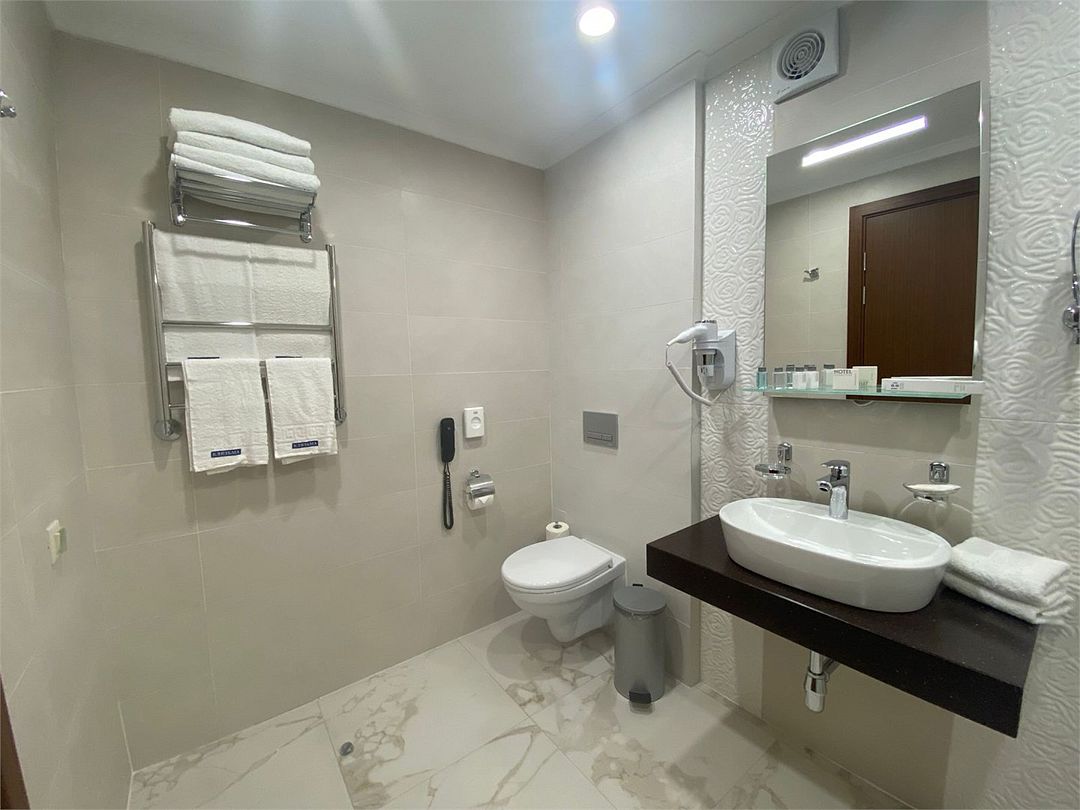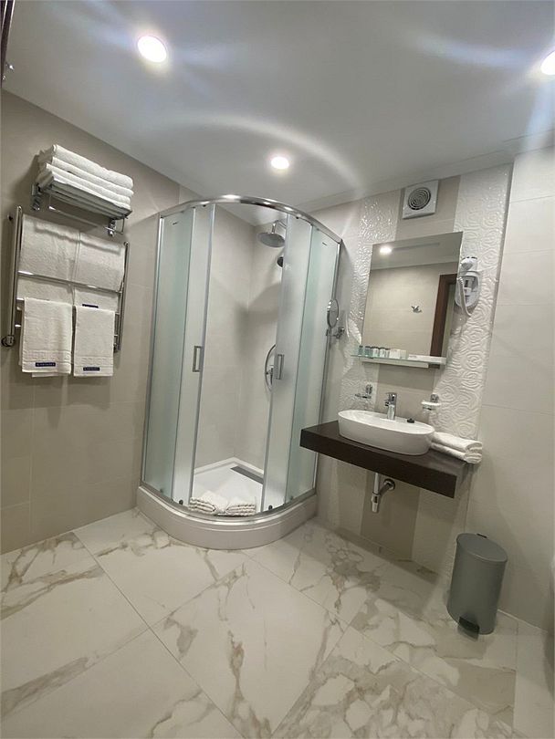 Ванная комната с большой ванной и туалетом. В данной категории номеров санузел может быть отдельным или совмещённым с ванной комнатой. Балкон с видом на лесопарк и/или водохранилище. Есть услуга Room-service