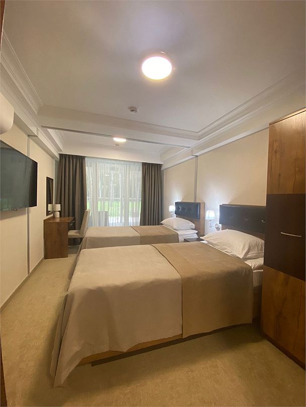 Для пар с ребенком до 3-х лет есть возможность поставить детскую кроватку за отдельную плату. Балкон с видом на лесопарк или водохранилище. Есть услуга Room-service. В номерах уровня стандарт отсутствуют кондиционеры.