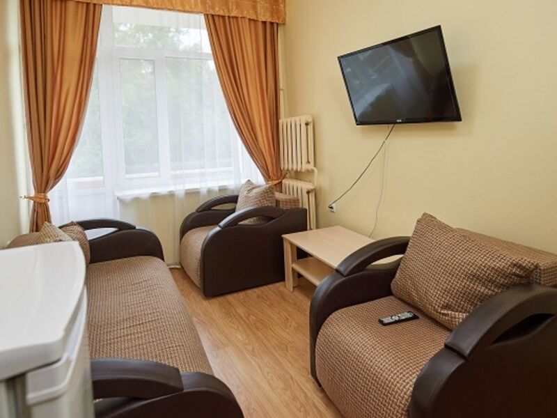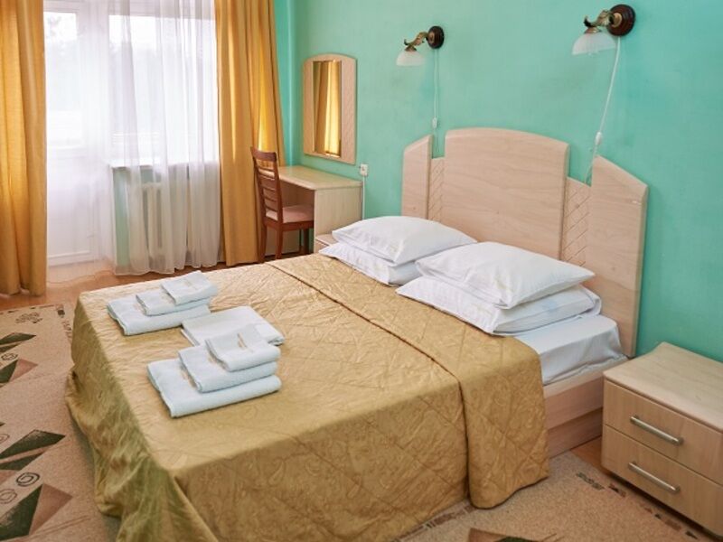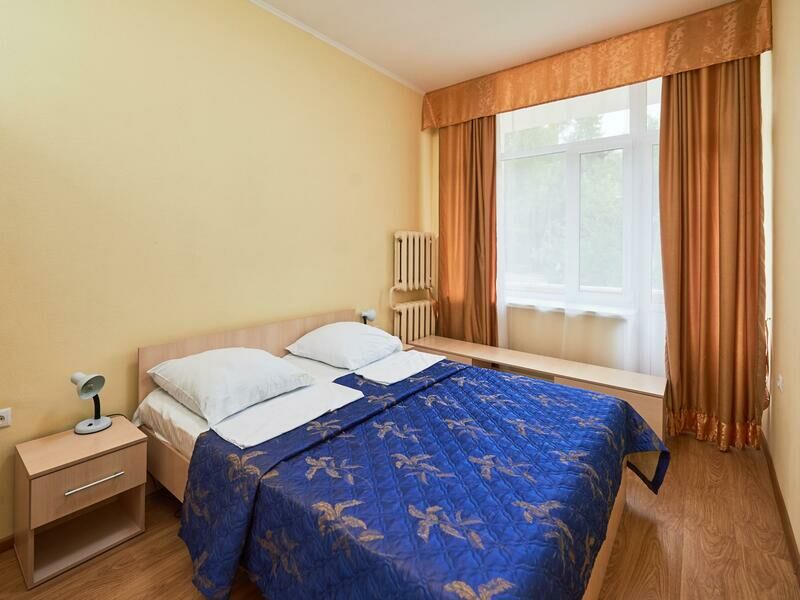 В санаторном комплексе комфортабельные спальные корпуса, современный лечебно-диагностический корпус с водолечебницей, бассейн.