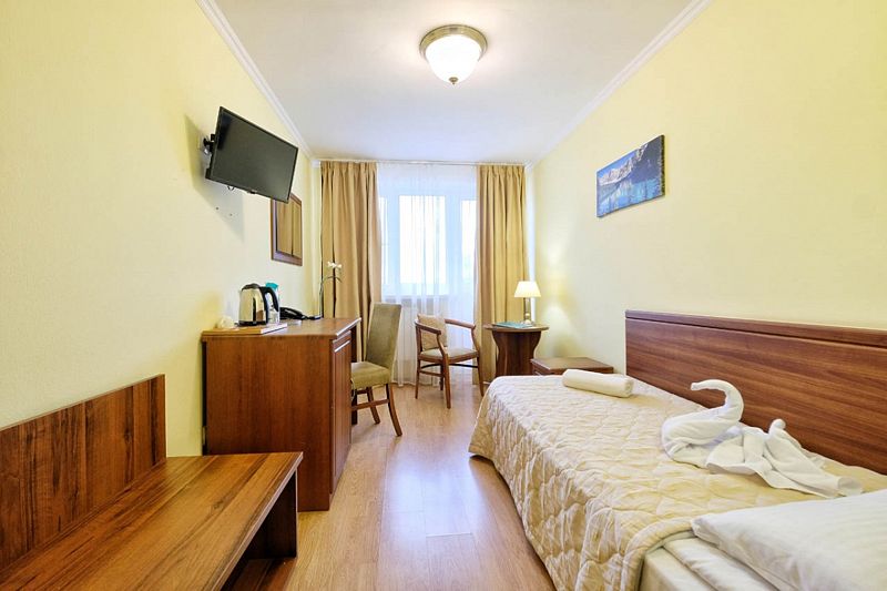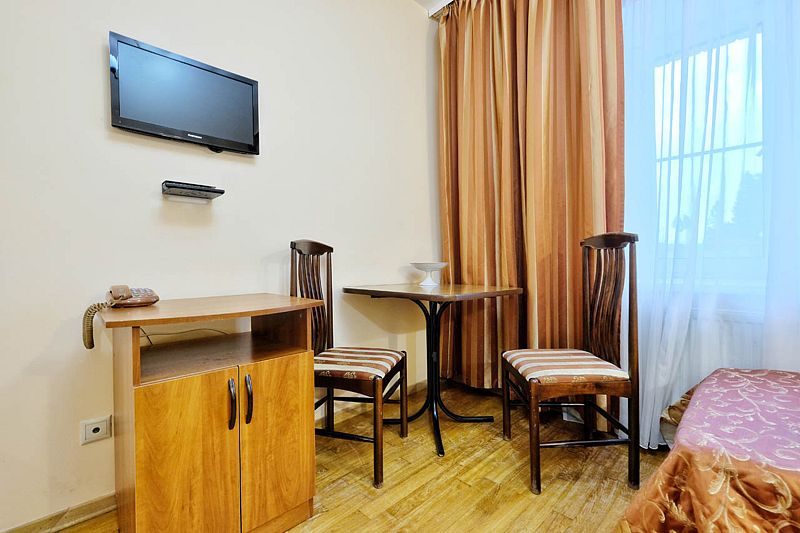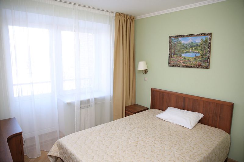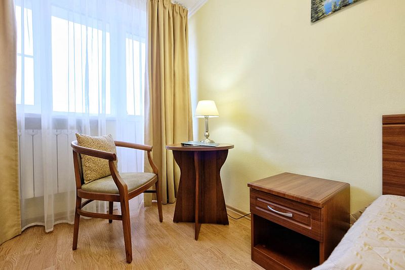 Однокомнатный номер со всеми удобствами. Дополнительное место – мягкая раскладушка. Расположен в 4 корпусе, оборудованном лифтом.