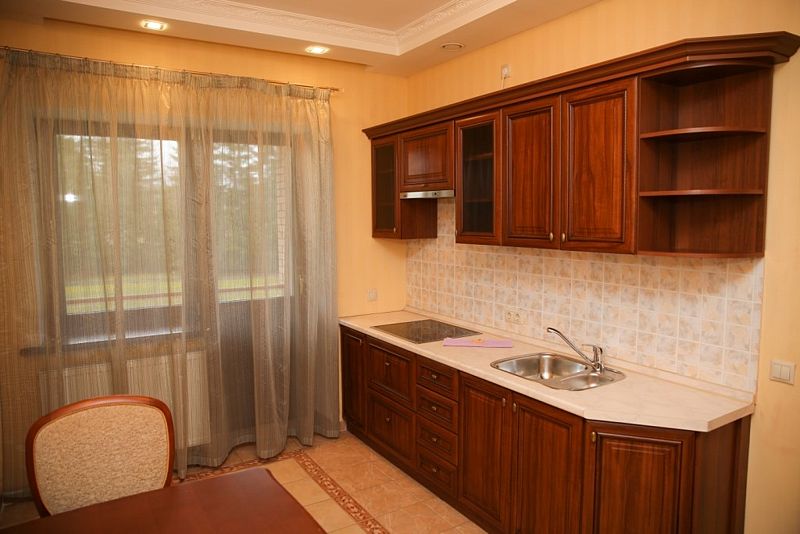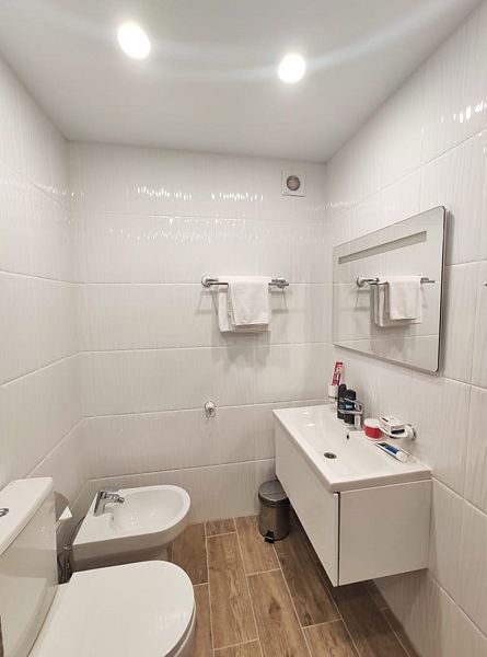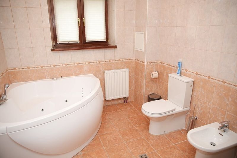 На 1 этаже: гостиная, спальная комната с 2-спальной кроватью, кухня-столовая, просторная ванная комната с джакузи, биде и санузлом, комплекс с встроенной финской сауной (парная, душевая, комната отдыха, туалет), две террасы.