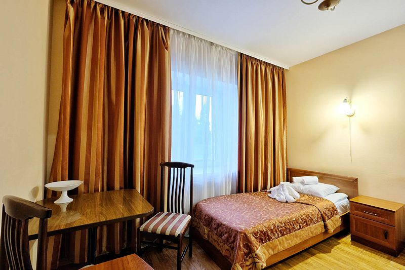 Для всех категорий номеров возможность приобретения путевок с питанием «Ресторан», стоимость которого рассчитывается из расчета +1000 ₽ с человека в сутки