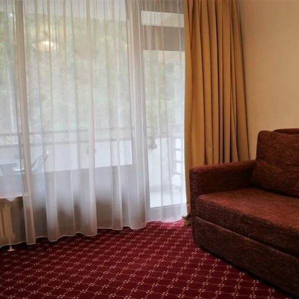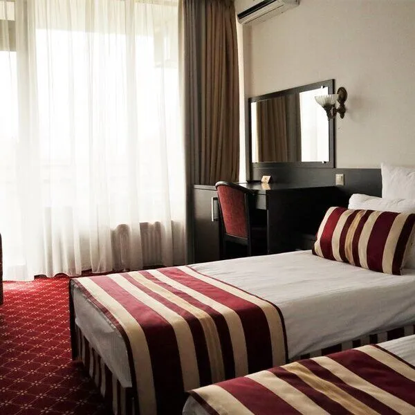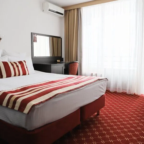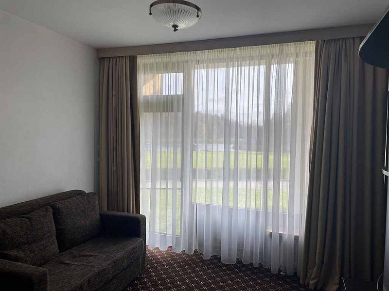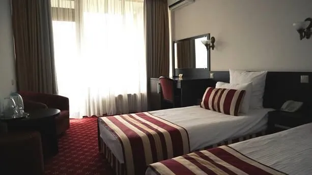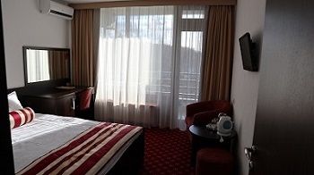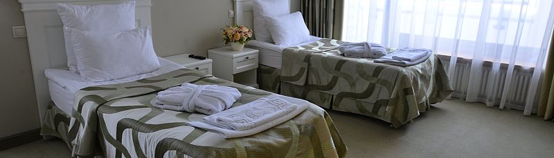 Однокомнатный стандарт в сторону леса с кроватями Вox spring. В номере 2 кровати по 80 см. По своей конструкции Box Spring может состоять из одного цельного двуспального блока или же из двух отдельных односпальных.