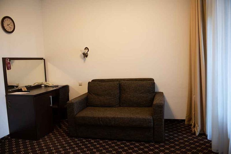 Одна двуспальная кровать, одна диван-кроватьВ гостиничном номере