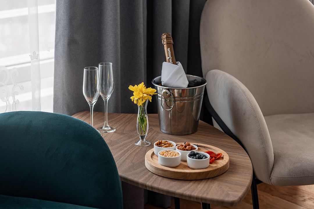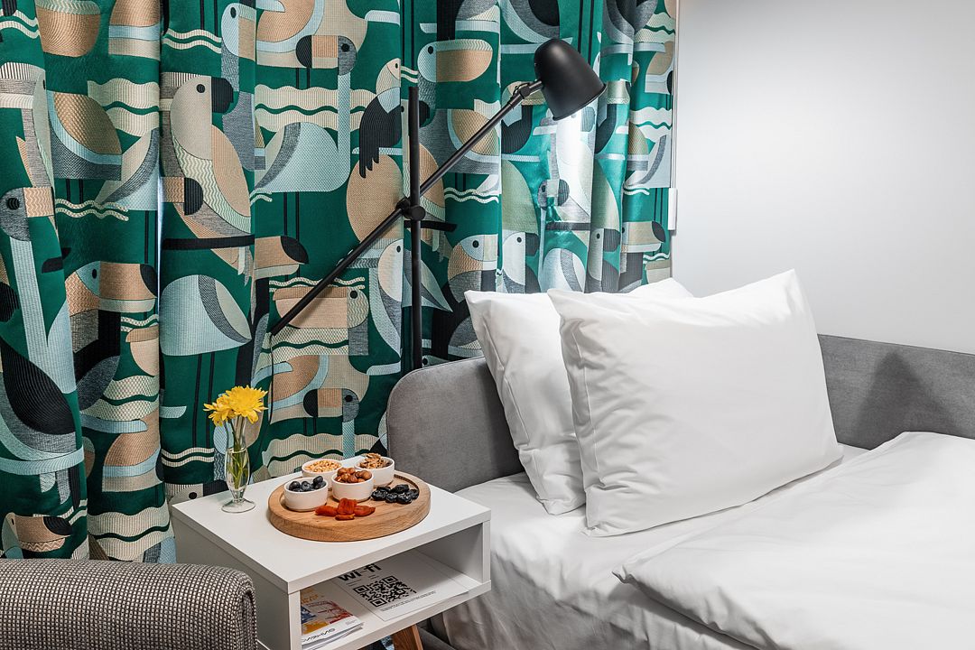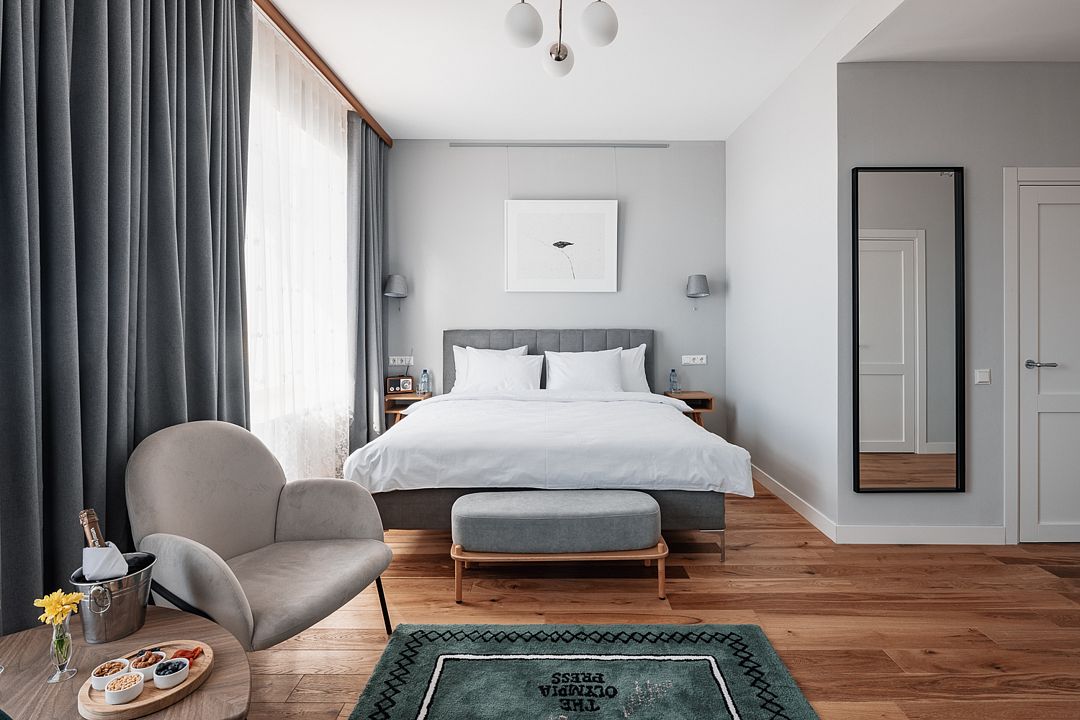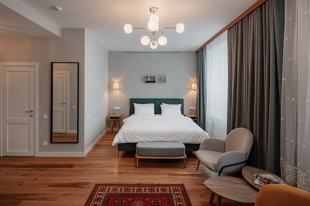 Атмосферный, стильный и современный арт-номер для комфортного размещения в арт-санатории "Изовела". Из окон открываются неповторимые виды на город или горы Хибины.