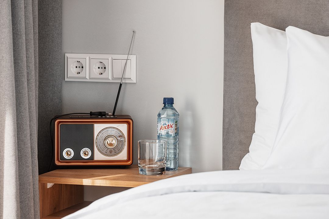 - Двуспальная кровать King Size или 2 отдельные кровати TWIN с индивидуальными прикроватными светильниками,