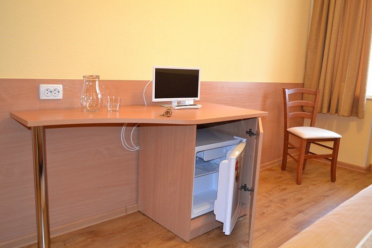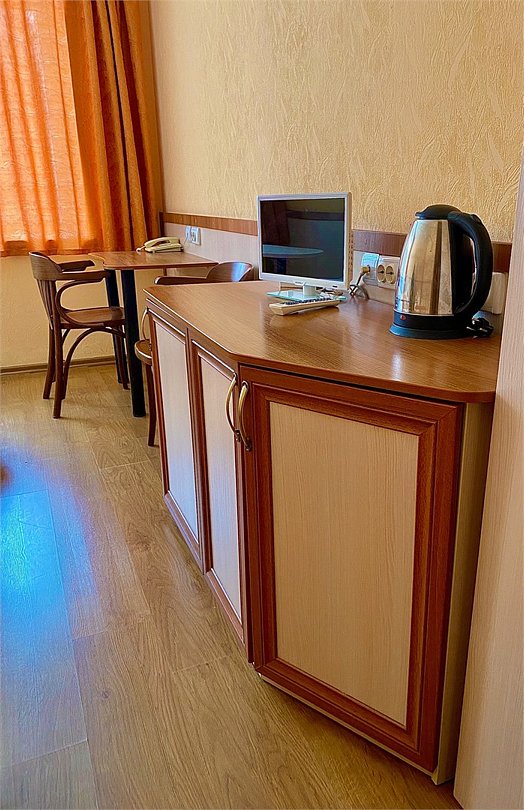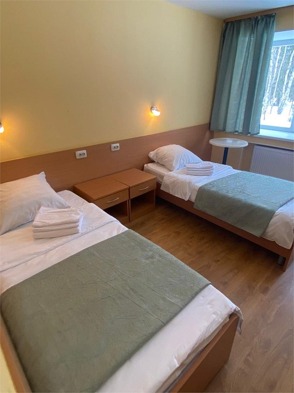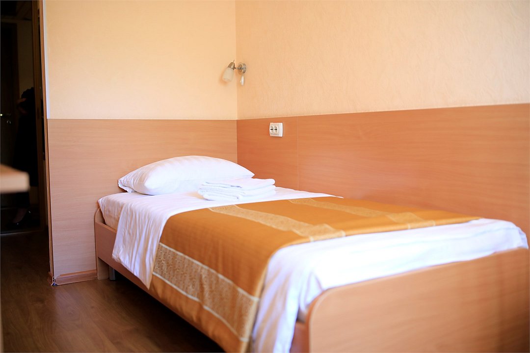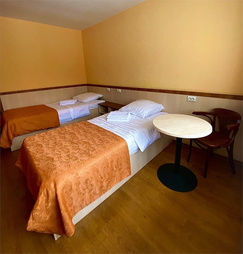 Комфортабельные, уютные двухместные номера , площадью от 17 кв. м.до 24 кв.м., состоят из одной комнаты, в которой собрано всё необходимое: Кровать 90*200; Холодильник; Телевизор; Телефон; Ванная комната; Бесплатный Wi-Fi; Каждый номер снабжается совмещённым санузлом и душевой кабиной.Услуги и удобства