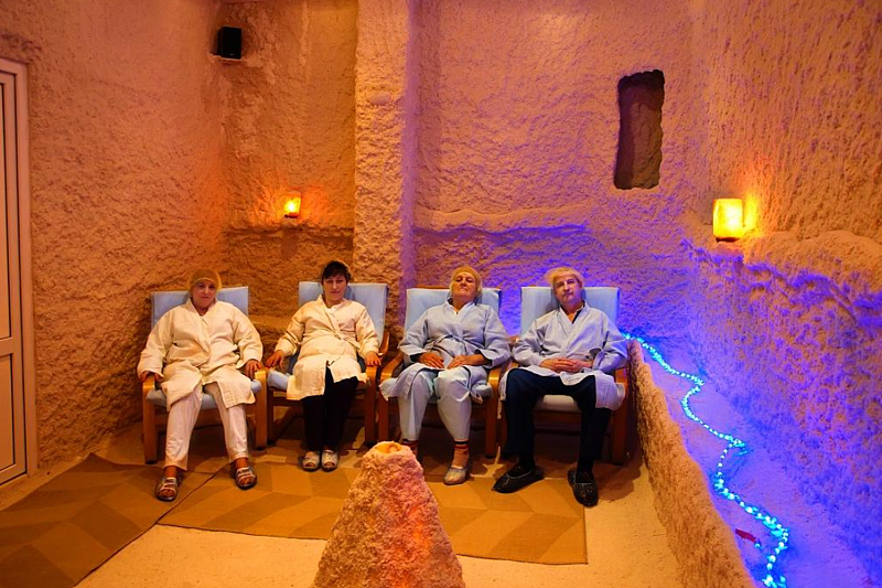 Спелеотерапия – лечение в спелеоклиматической камере. Камера представляет собой комнату искусственно созданную человеком. Стены, пол, потолок помещения выполнены специальными соляными блоками. Воздух камеры насыщен высокодисперсными аэрозолями солей кальция, магния, натрия, калия. Попадая в легкие при постоянном температурно-влажностном режиме, они снижают реактивность бронхов, улучшают их дренажную функцию, оказывают противовоспалительное действие, повышают уровень иммунной защиты. Благоприятный эффект оказывается за счет повышенной ионизации воздуха: улучшается функциональное состояние клеток бронхиального дерева.
