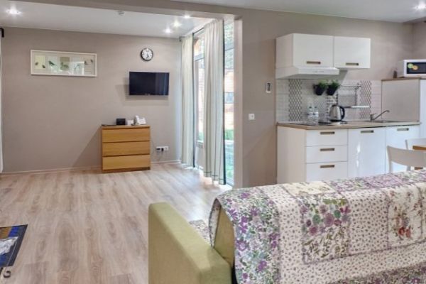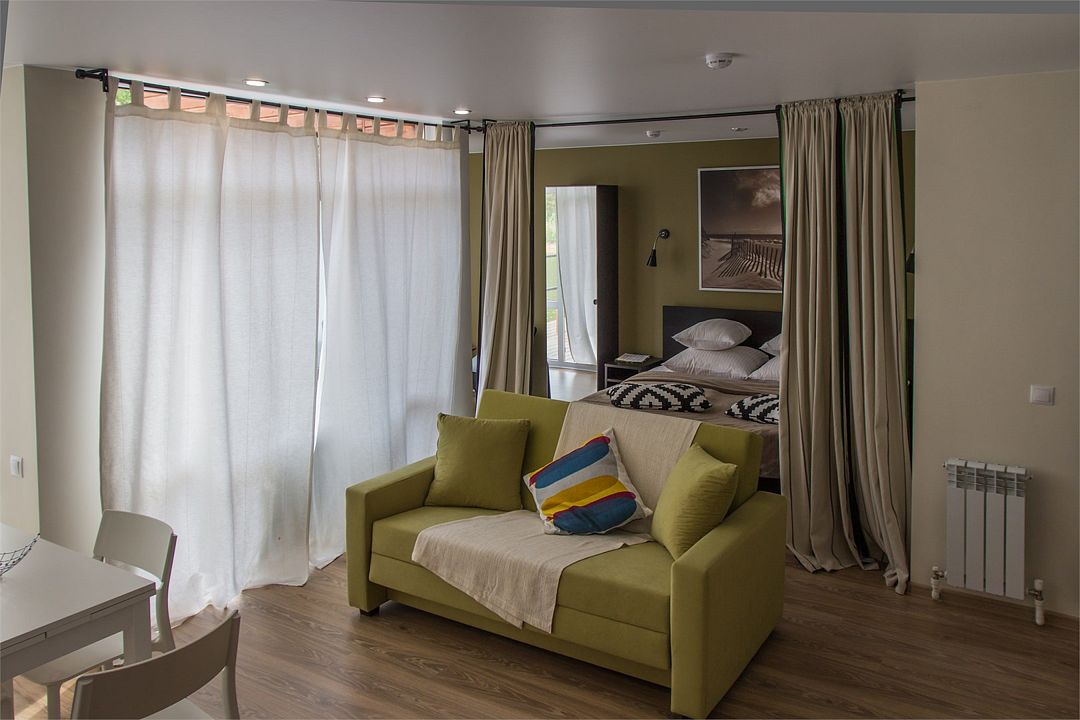 Студия — просторные современные номера европейского уровня. Идеально подходят для комфортного отдыха вдвоем или для семьи с маленьким ребенком.Услуги и удобства
