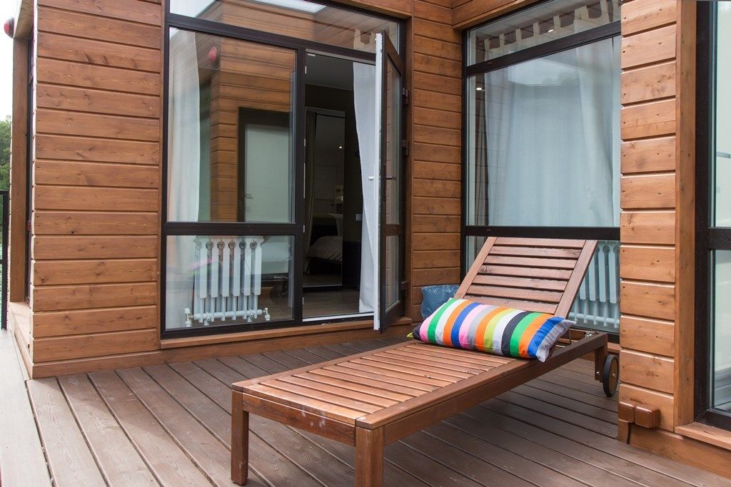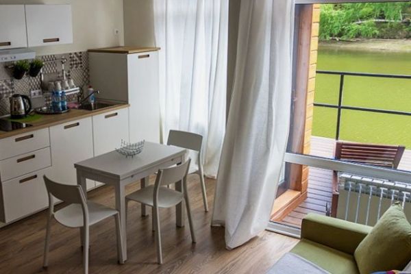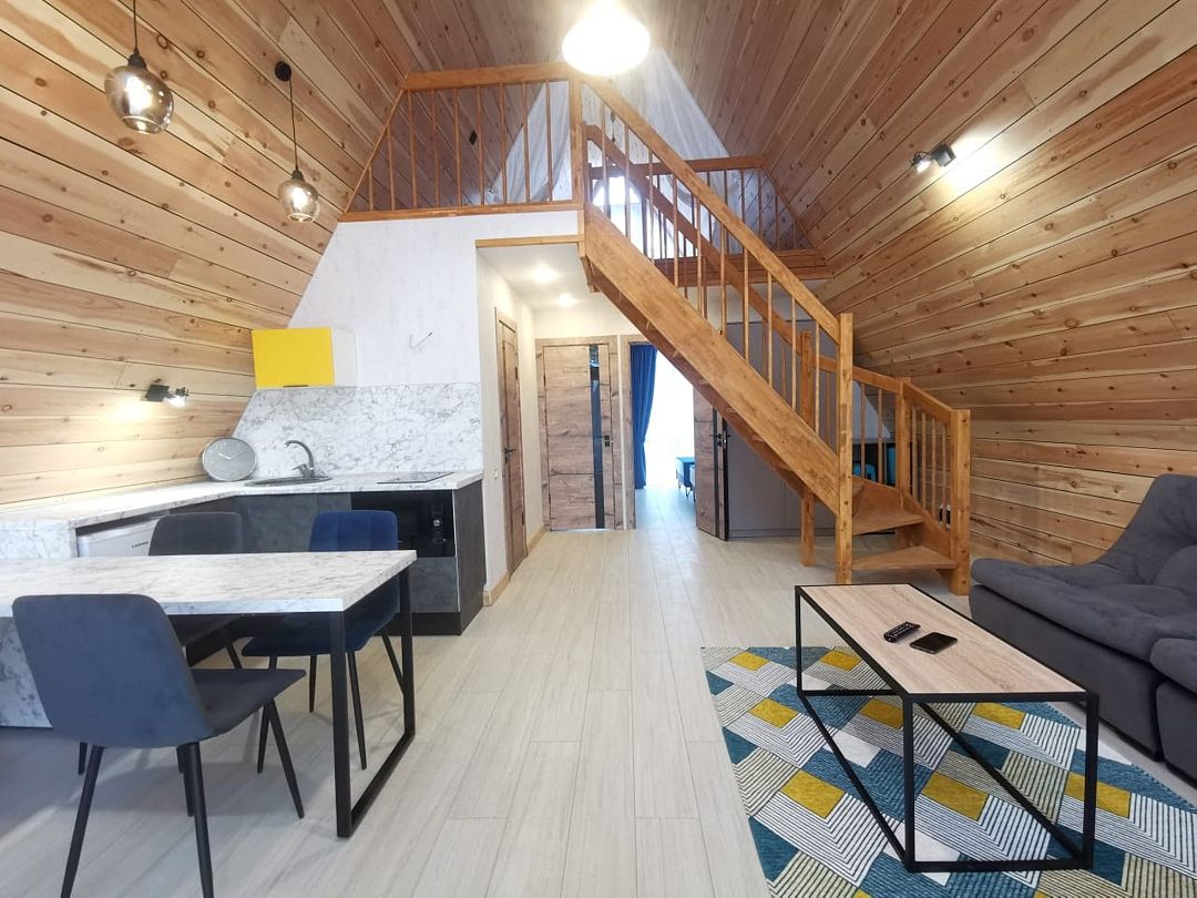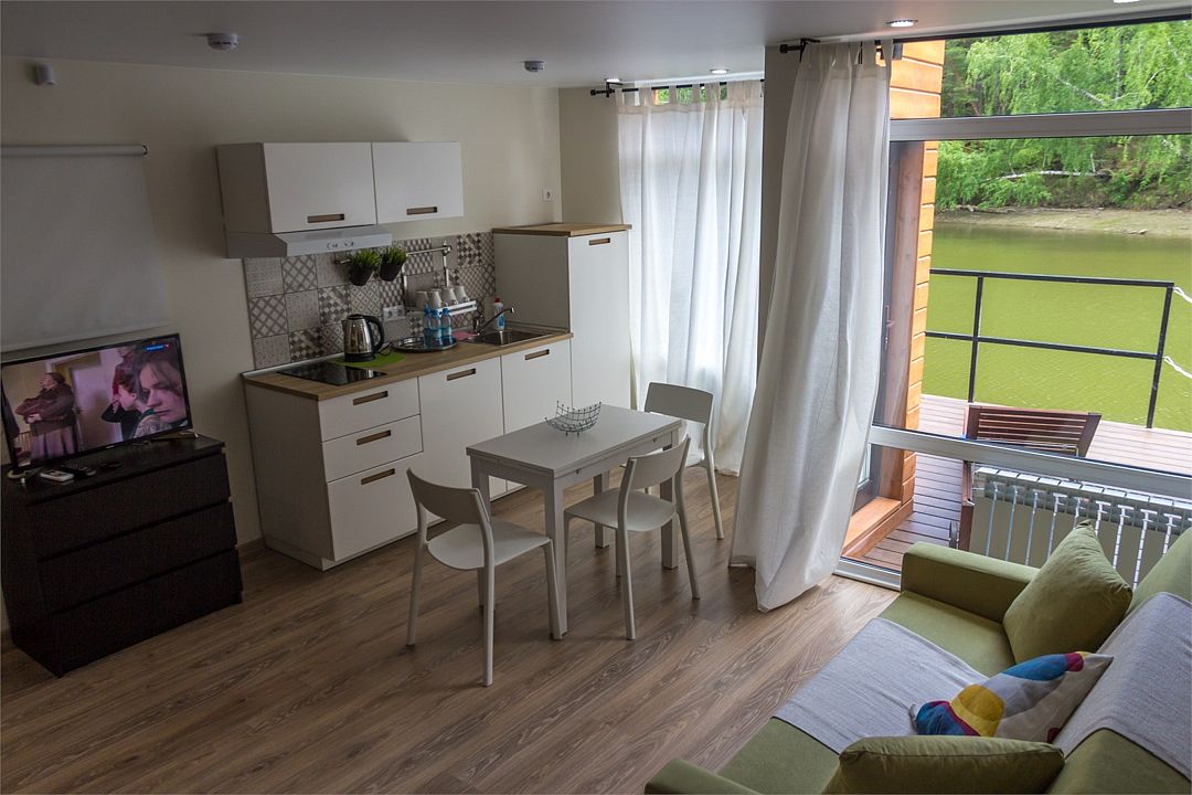 Просторные дома-студии на берегу реки Раздельная. Широкая веранда с лежаками, оборудованная кухня.Услуги и удобства