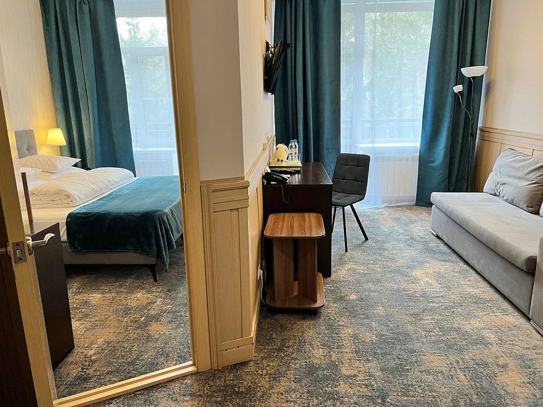Уютный номер со спальней и гостиной. Улучшенные номера прекрасно подходят для людей, превыше всего ценящих комфорт, а также для семейного отдыха с маленькими детьми.Услуги и удобства