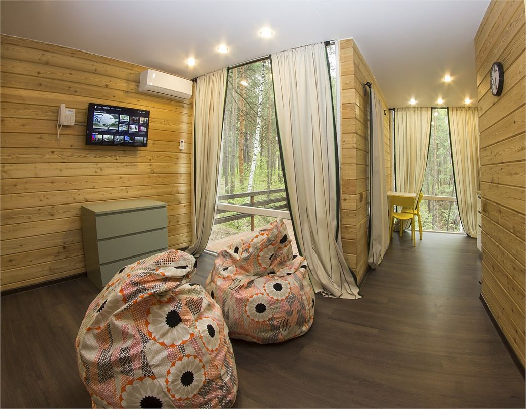Стильные, современные, благоустроенные дома-студии в лесу с панорамными окнами. Вместимость до 4 человекУслуги и удобства