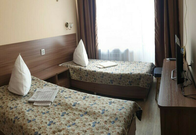 две односпальные кровати, ТВ, холодильник, сейф, кондиционер, туалетные принадлежности, с/у с душем