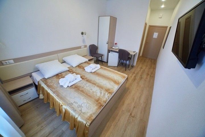 Санузел с ванной, мини-кухня, ТВ, 1 большая двуспальная кровать или 2 односпальные кровати, раскладной диван