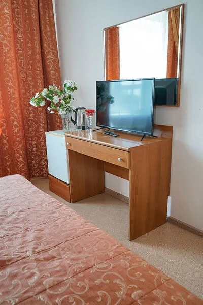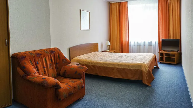 Однокомнатный номер повышенной комфортности 19 м2 (I этаж) – в номере телевизор с выходом в интернет, холодильник, электрический чайник, фен, махровый халат, совмещенный санузел (душевая кабина, туалет).