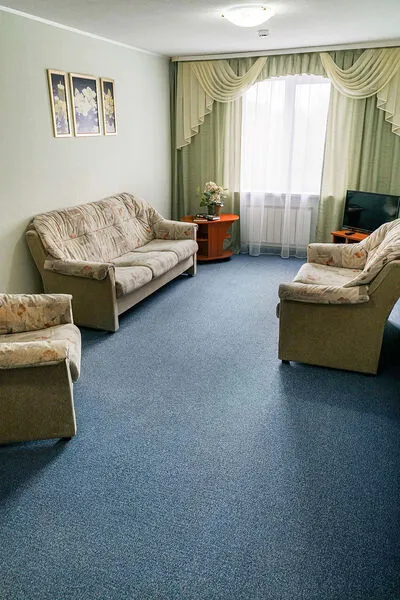 2-х комнатный номер повышенной комфортности 40 м2 (I этаж) – в номере телевизор с выходом в интернет, холодильник, электрический чайник, фен, махровый халат, совмещенный санузел.