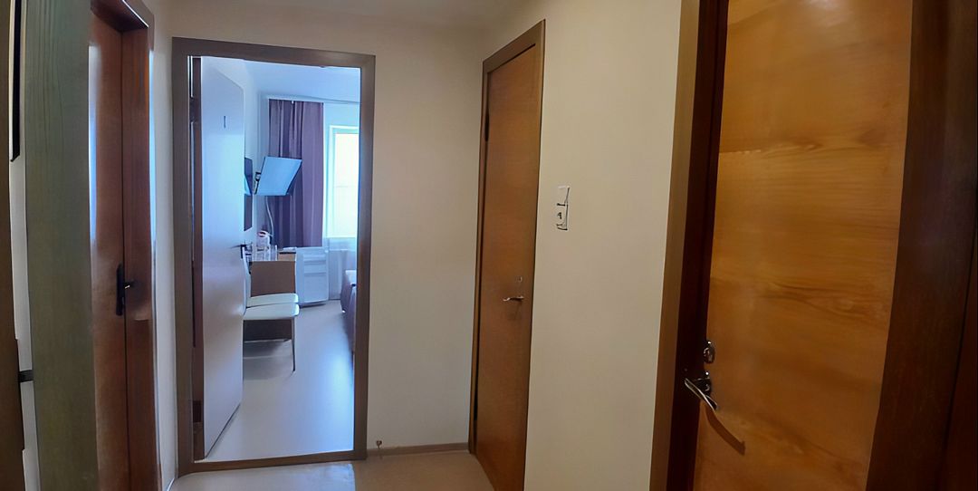 Есть общий коридорчик с соседней комнатой, но душ и туалет свои