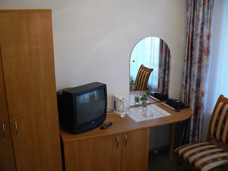 В номере: холодильник, ЖК телевизор, чайник, большая ванна с душем и биде, фен.