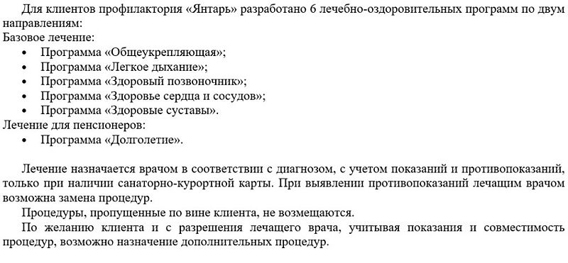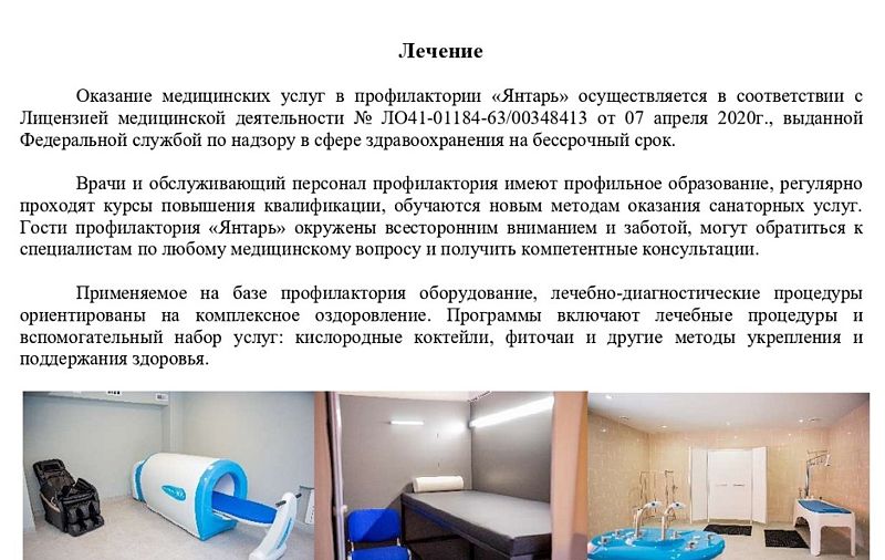 Профилакторий «Янтарь» предлагает комплекс санаторно-оздоровительных услуг общетерапевтического назначения.