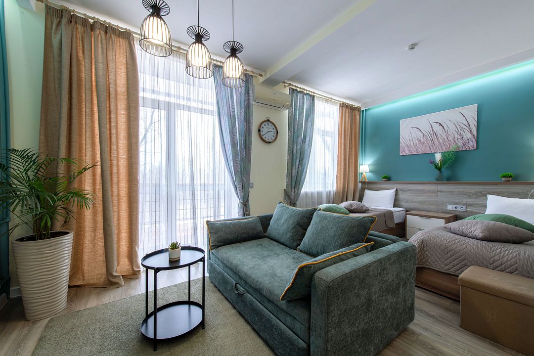 В данном номере имеются две односпальные кровати, диван базовые удобства (санузел, холодильник, ТВ, кондиционер, фен, чайник, посуда, халат, тапочки, средства гигиены).