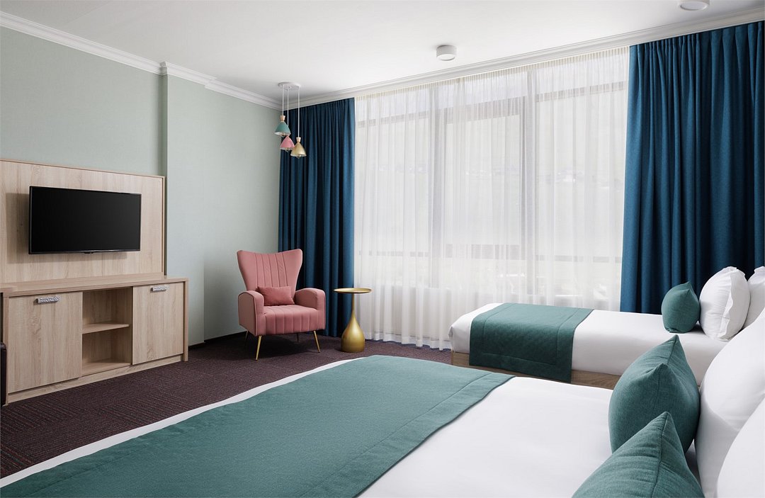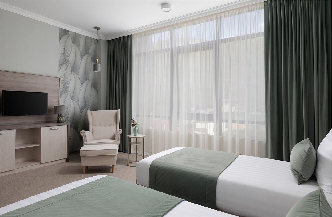 Wi-Fi, фен, ванная комната, ванна, санузел, халаты, банные полотенца, тапочки, гигиенические средства, две односпальные кровати, гладильная доска, шкаф для одежды, письменный стол, багажная тумба, зеркало, чайный набор, обслуживание номеров, сейф, чайник, унитаз, раковина, косметическое зеркало, питьевая вода, ковровое покрытие, отопление, душ, вид на город, высокие потолки, стаканы, стул, туалетные средства, сплит-система, панорамные окна, цифровое тв, внутренний телефон, телевизор с плоским экраном, мини-холодильник, шкаф-купе, вид на горы, номер для некурящих, общественный бассейн, вешалки-плечики, без питомцевВ гостиничном номере
