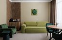 Большой двухкомнатный номер класса люкс, в котором удачно сочетаются атмосфера уюта и современный продуманный дизайн. В номере созданы все условия для приятного отдыха – это мягкая двуспальная кровать, удобный раскладной диван, журнальный стол, шкаф-купе, чайный набор. Разумеется, предусмотрен кондиционер, холодильник, ЖК телевизор. Индивидуальный санузел оборудован душем или ванной. В стоимость номера входит бесплатный Wi-Fi и весь широкий спектр бесплатных услуг отеля, включая бассейн, тренажерный зал, сауну.Услуги и удобства