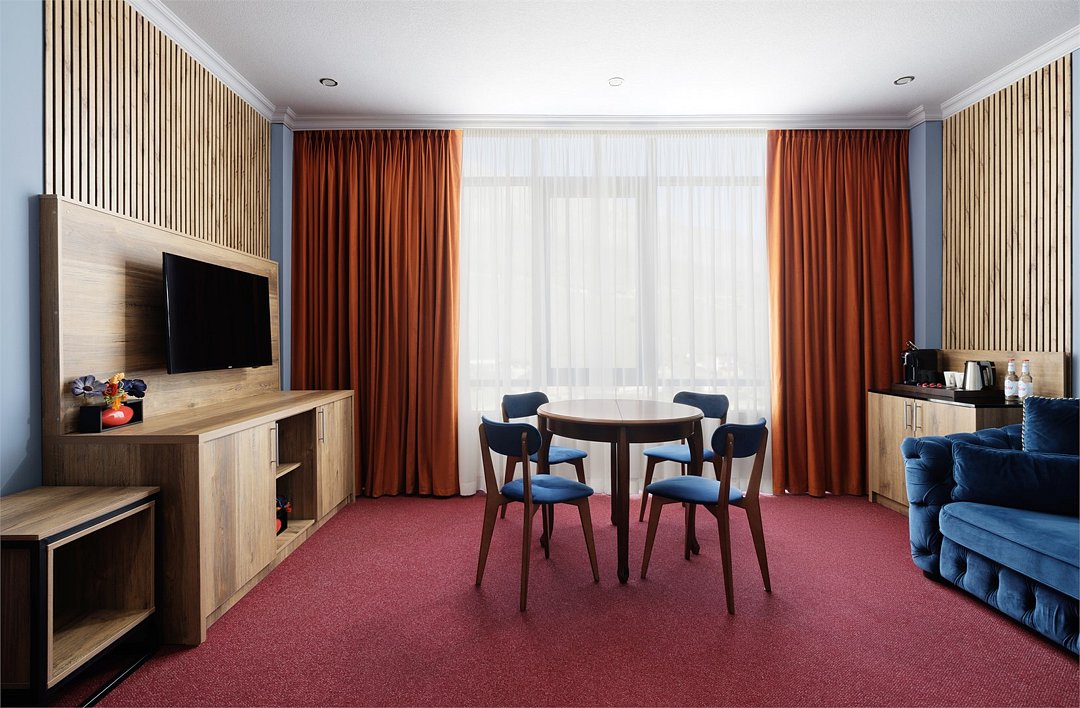 два телевизора, Wi-Fi, настольные лампы, фен, электронные замки, санузел, халаты, банные полотенца, тапочки, гигиенические средства, кровать «Queen size», гладильная доска, тумбы, журнальный столик, письменный стол, багажная тумба, зеркало, пуфики, две комнаты, чайный набор, обслуживание номеров, сейф, чайник, унитаз, раковина, косметическое зеркало, питьевая вода, гостиная зона, ковровое покрытие, отопление, душ, вид на город, вид на реку, высокие потолки, стаканы, стул, туалетные средства, туалет, сплит-система, панорамные окна, цифровое тв, диван-кровать, раскладной диван, раскладное кресло, внутренний телефон, телевизор с плоским экраном, мини-холодильник, шкаф-купе, вид на горы, номер для некурящих, общественный бассейн, кресло-кровать, вешалки-плечики, без питомцевВ гостиничном номере