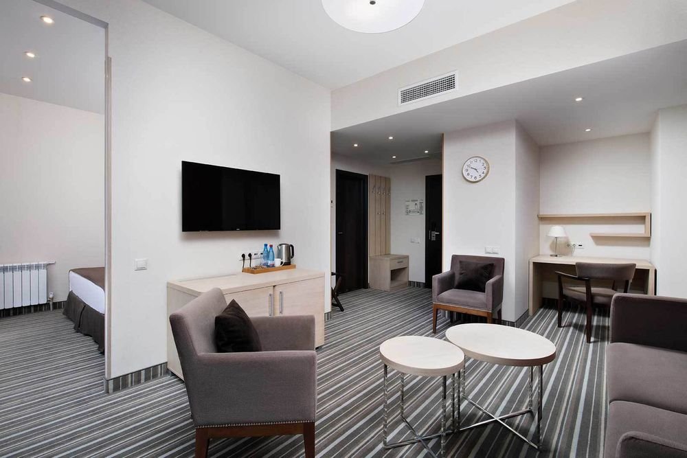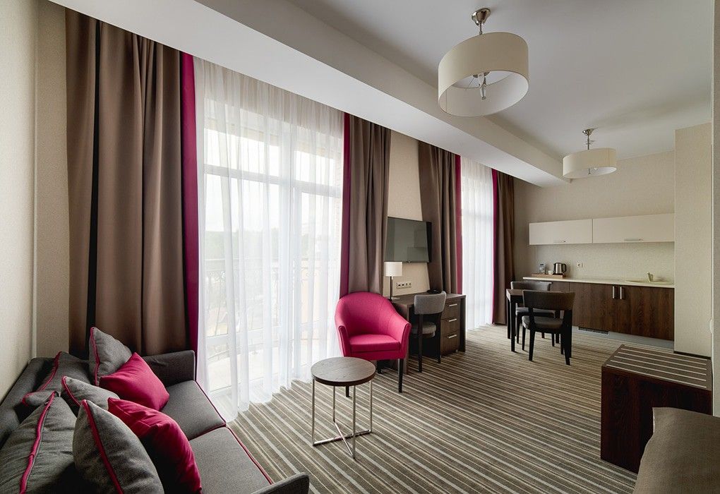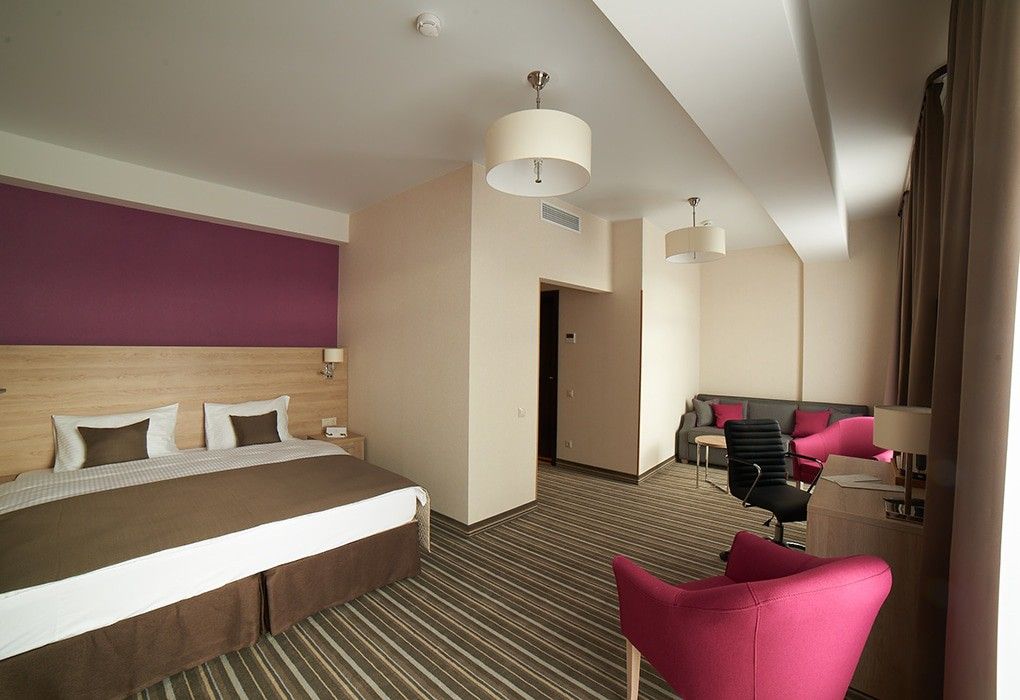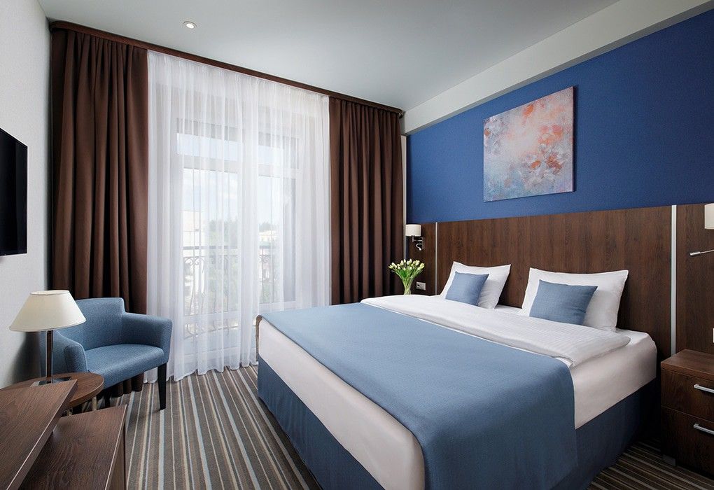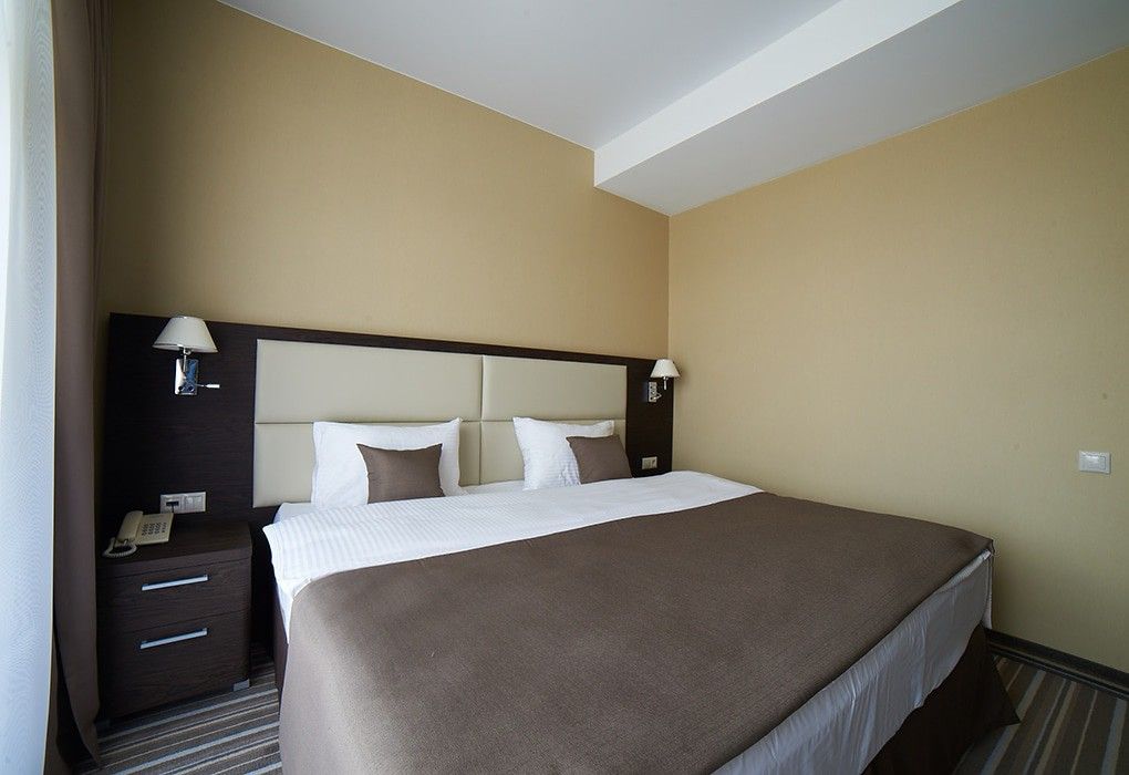 Здесь рады принимать гостей круглый год! Номерной фонд составляет 79 комфортных номеров различных категорий в современном восьмиэтажном здании, каждый из которых обладает стильным интерьером и оснащён всем необходимым для отдыха между процедурами.