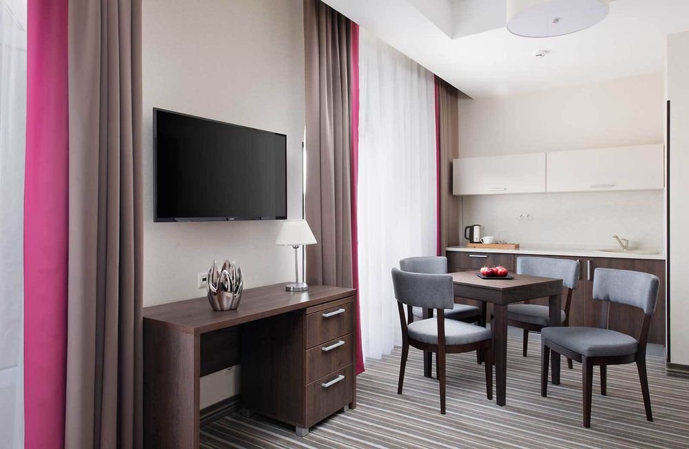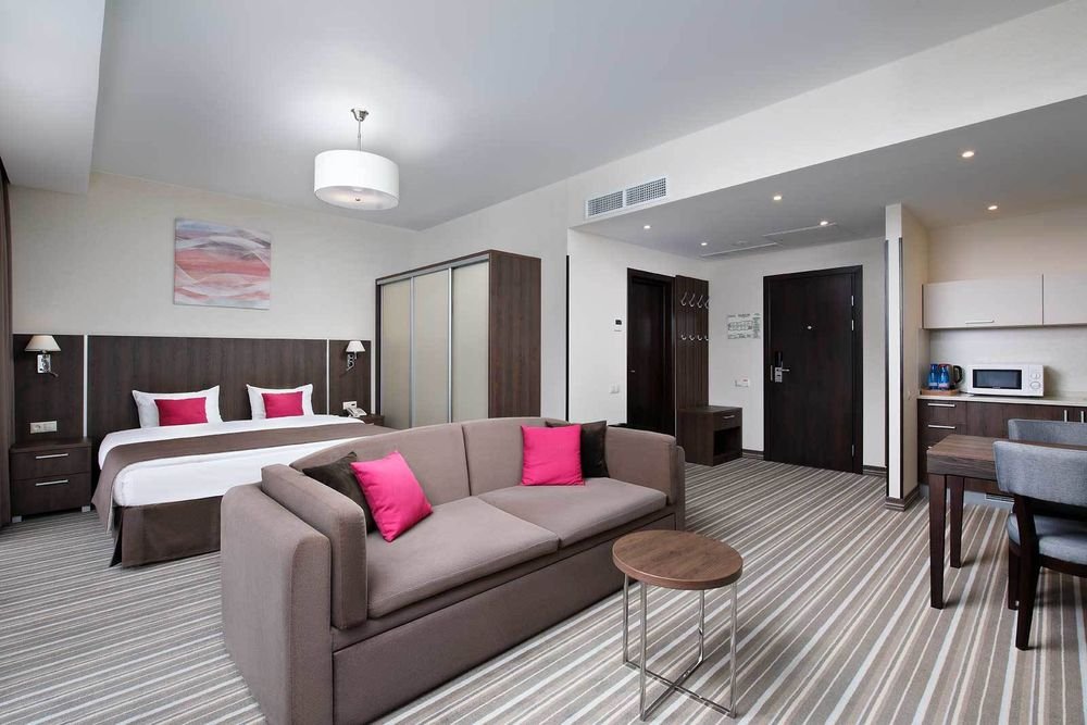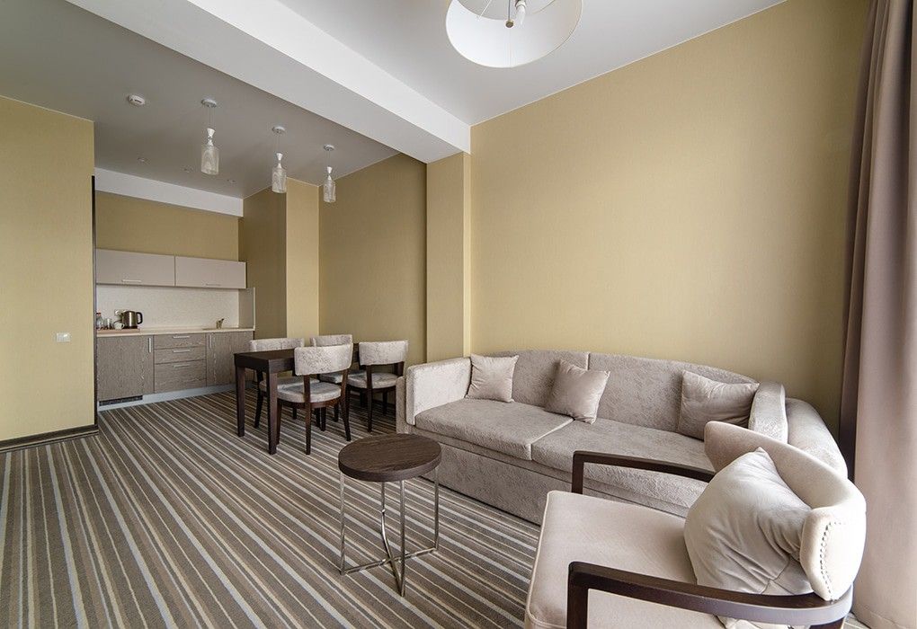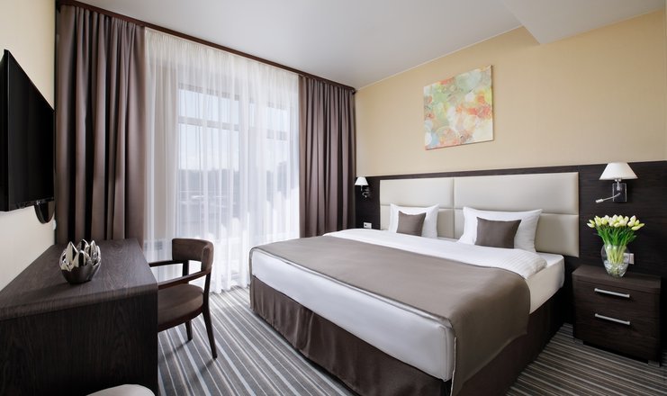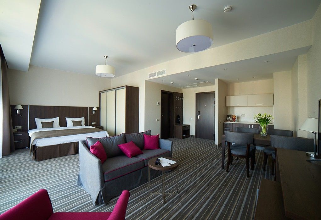Здесь рады принимать гостей круглый год! Номерной фонд составляет 79 комфортных номеров различных категорий в современном восьмиэтажном здании, каждый из которых обладает стильным интерьером и оснащён всем необходимым для отдыха между процедурами.