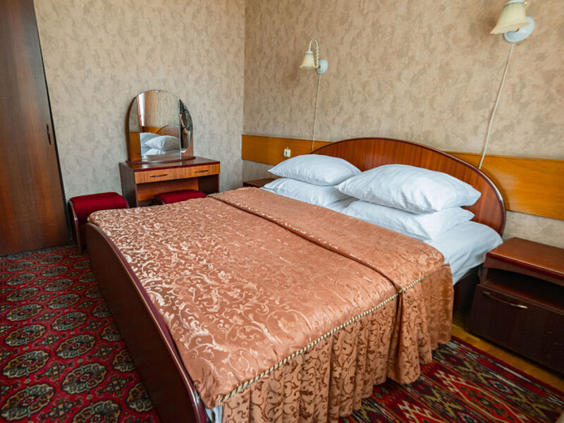 Особенности номера: продуманная обстановка, удобная мебель, большая двуспальная кровать в спальне, раскладывающийся диван в гостиной комнате. Бесплатный Wi-Fi в холлах спальных корпусов и приемном отделении, в номере есть балкон.